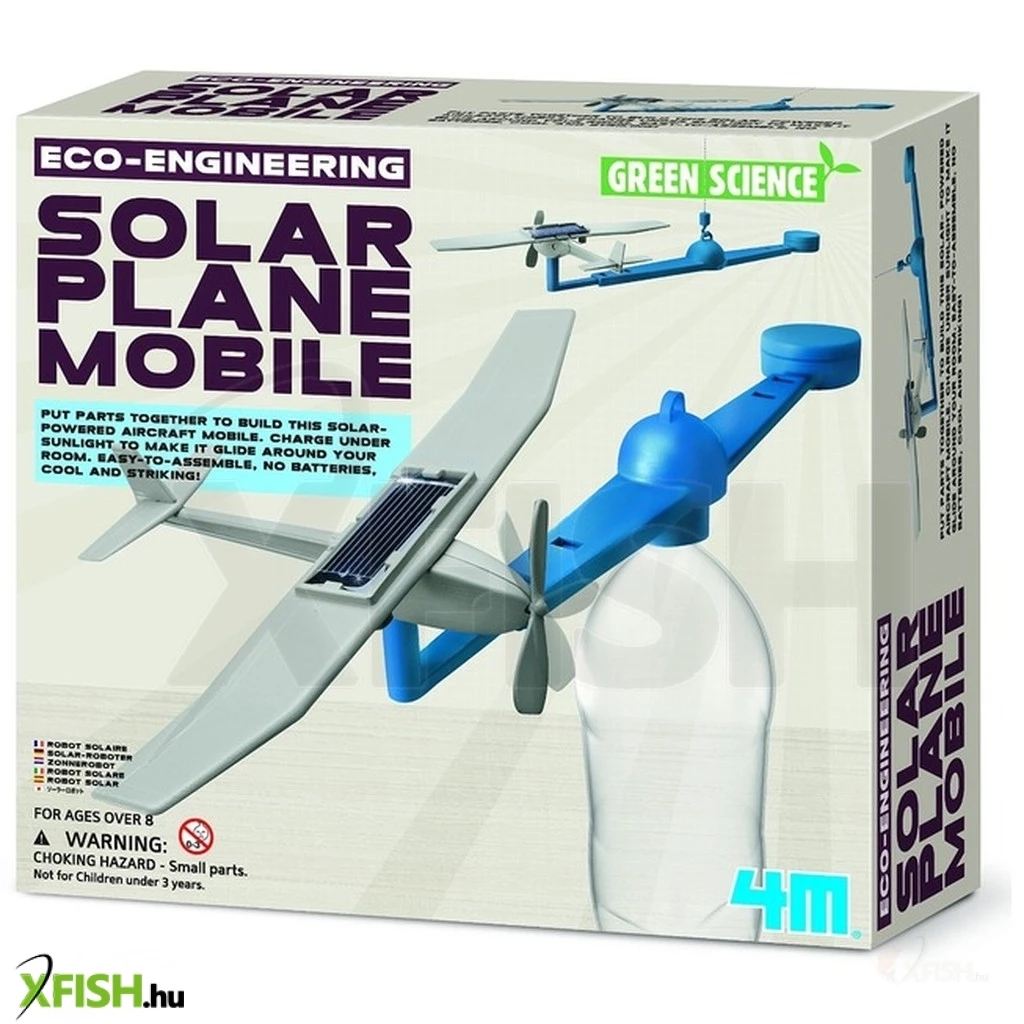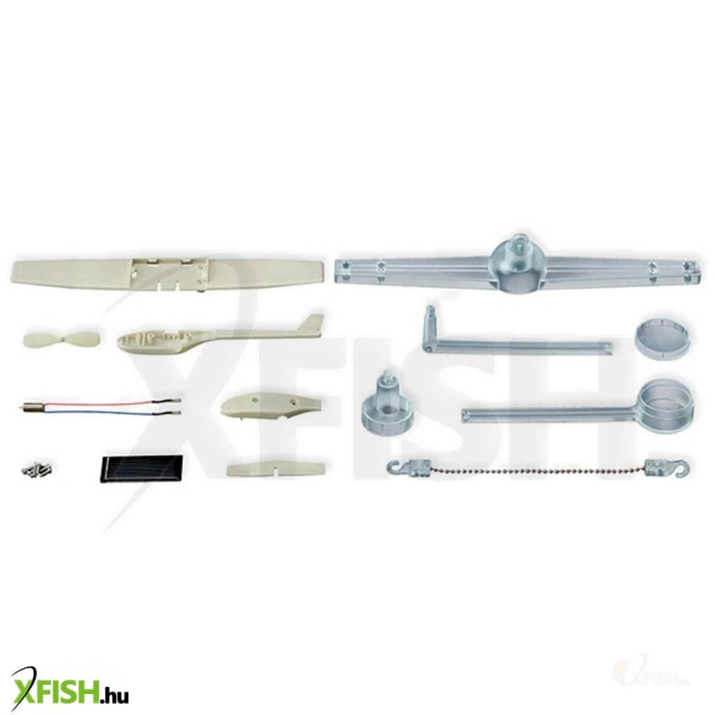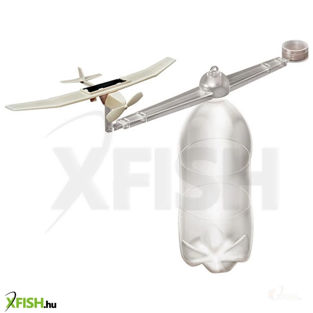 Reptesd a szobádban a műanyag propelleres repülőt! A 4m napelemes repülő készlet az újrahasznosítást és a zöld energiát mutatja be, különleges módszerrel. A repülőt több alkatrészből lehet összeállítani, szereld össze a szárnyat, a géptörzset és a propellert, tedd a tetejére a napelemet, és az elejére a propellert! Ha ezzel kész vagy, már csak egy műanyag palackra lesz szükséged, amit kb. félig kell tölteni vízzel. A repülőt a forgó kerettel az üvegre tudod erősíteni, amint fény éri a napelemeket, a propeller felpörög és a repülő körözni kezd. A 4m napelemes repülő készletminden alkatrészt tartalmaz, a használatához csak egy csillagcsavarhúzóra lesz szükséged. A 4m napelemes repülő készlet csomagolási méretei: 24 x 6 x 22 cm.