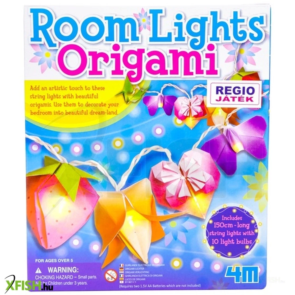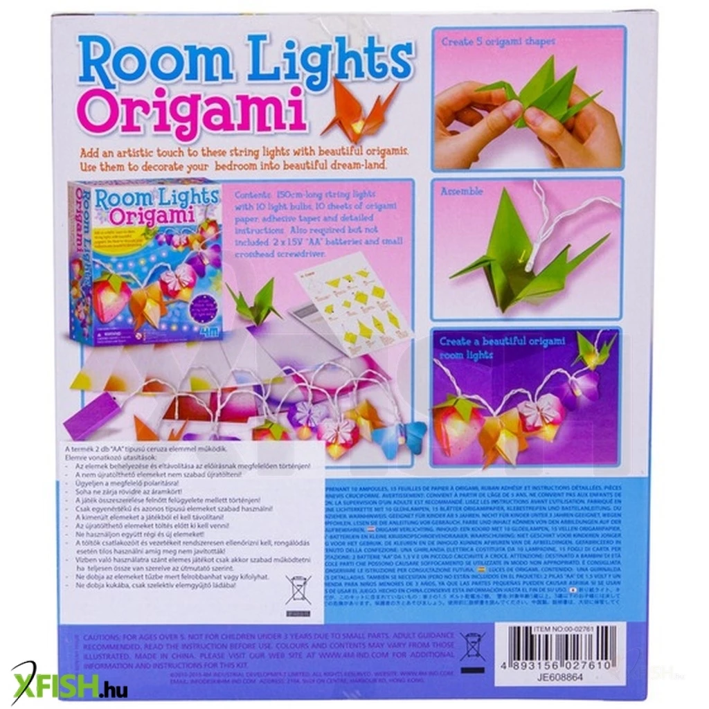 Világítsd meg a szobádat varázslatos papírteremtményekkel! A 4m origami lámpafüzér készlet egy másfél méteres vezetéket tartalmaz tíz izzóval. Az izzókra a színes origami papírból tudsz különböző formákat hajtogatni. A játékleírást követve megtanulod, hogyan kell papírból pillangókat, madarat, virágot vagy épp egy szép epret hajtogatni. Ezeket könnyen fel tudod akasztani a lámpafüzérre, és egy színes lampionsor fogja díszíteni a szobádat! A 4m origami lámpafüzér készlet 2 db AA ceruzaelemmel működik, a csomagolás az elemeket nem tartalmazza.