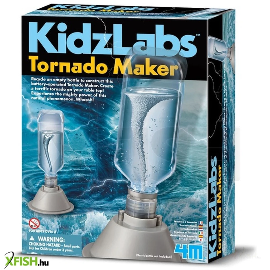 Fogj egy műanyag palackot és készíts egy elemes tornádógépet! A 4m tornádó tudományos készlet egy alapot tartalmaz, amire csak egy vízzel töltött palackot kell raknod, és már tanulmányozhatod is a szobádban ezt a félelmetes természeti jelenséget! A alapban először össze kell állítani a szerkezetet, a villanymotorra rá kell erősíteni a propellert, össze kell csavarozni, végül elemeket kell beletenni. A 4m tornádó tudományos készlet ha már használatra kész, csak be kell kapcsolnod, és az üveg belsejében kialakul a látványos jelenség. Figyeld meg a pörgő tornádót, és jegyezd fel érdekes észrevételeid! A 4m tornádó tudományos készlet játék 2 db AA ceruzaelemmel működik, a csomagolás az elemeket tartalmazza.