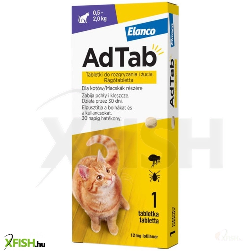 AdTab 12 mg rágótabletta macskák részére (0,5–2,0 kg)