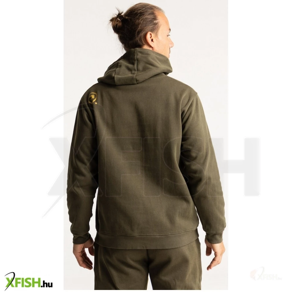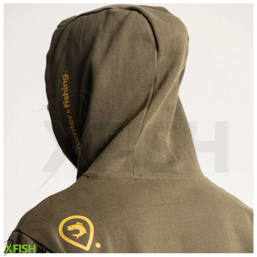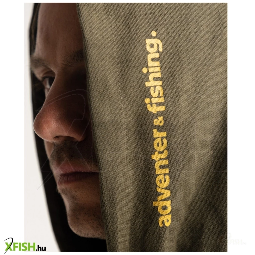 Khaki színű férfi kapucnis felső, homokszínű írással. A 85% pamutból készült puha anyag és a kényelmes illeszkedés ideális társsá teszi a horgászathoz, utazáshoz és egyéb szabadidős tevékenységekhez. A pulóver hasán egy nagy kenguru zseb található. A még nagyobb kényelem érdekében ne felejtse el viselni az azonos dizájnú pamut melegítőnadrágot is. US méretezés, az általában használt EU mérettől egyel kisebb méretet érdemes választani a ruházatból!