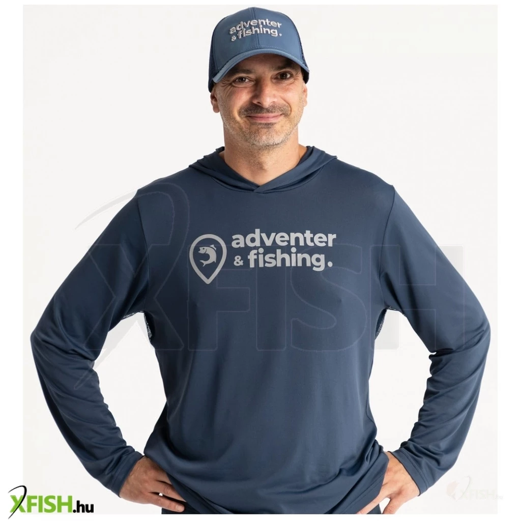 Hosszú ujjú kapucnis UV póló Original Adventer témában, az Adventer & Fishing márka sötétkék színében.