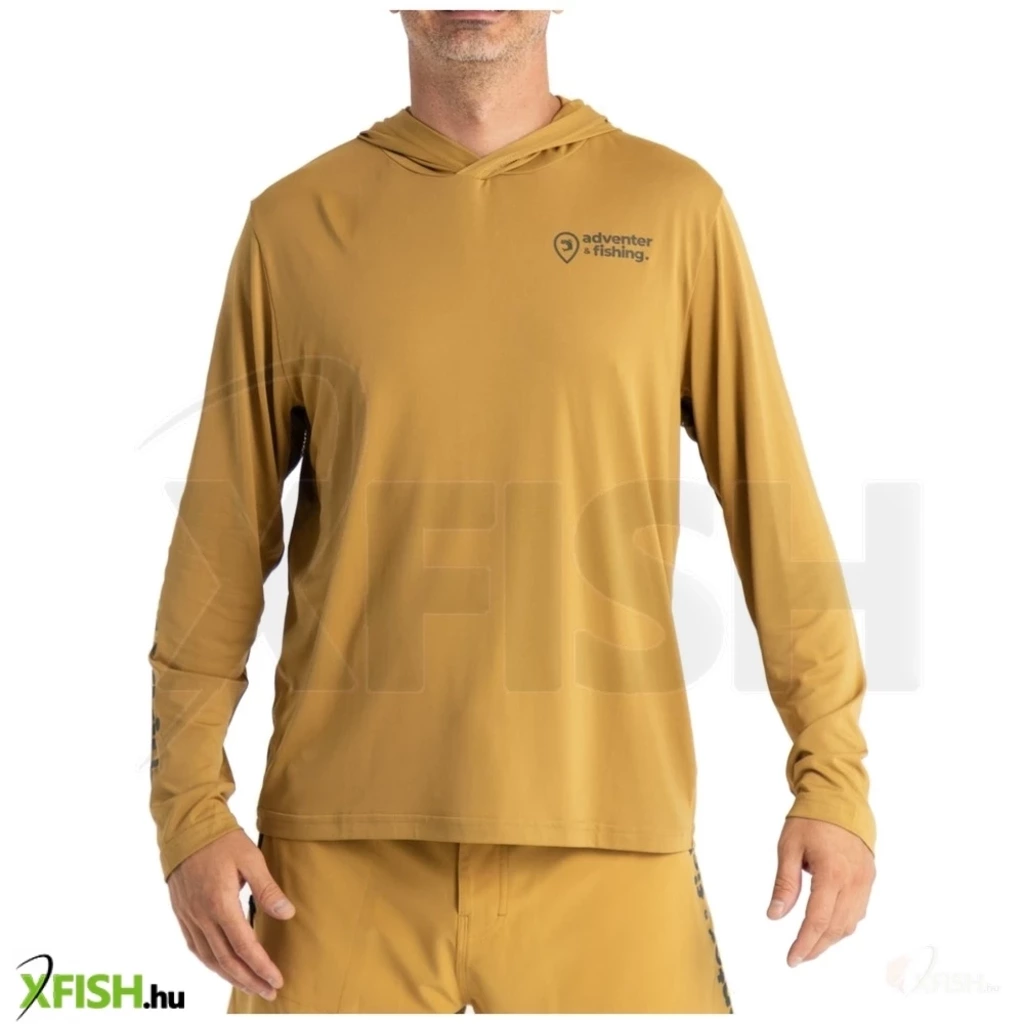 Hosszú ujjú kapucnis UV póló Sand témában, az Adventer & Fishing márka homok színében.