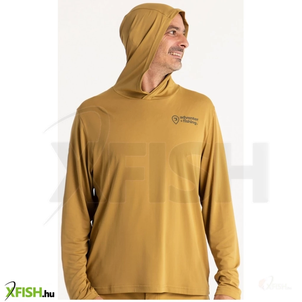 Hosszú ujjú kapucnis UV póló Sand témában, az Adventer & Fishing márka homok színében.