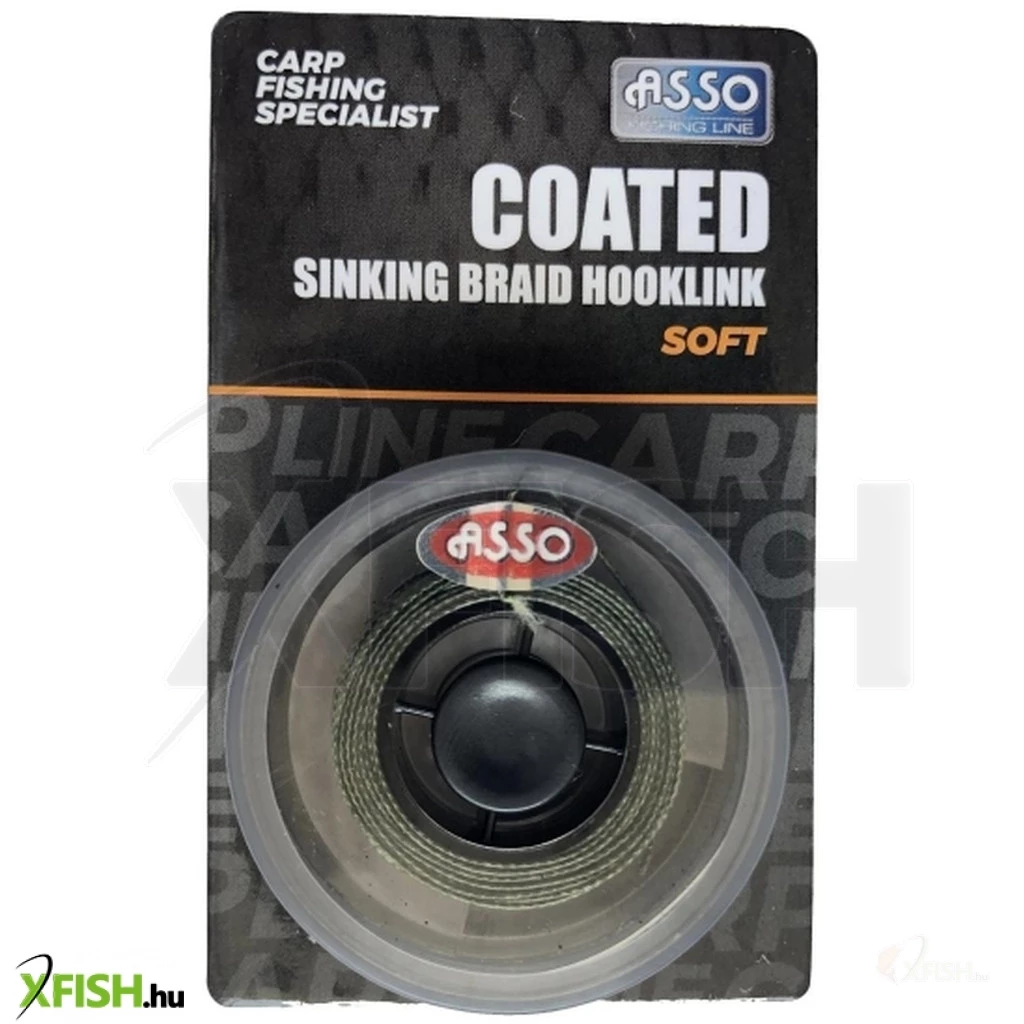 Az ASSO COATED SINKING BRAID SOFT 10M hooklink egy bevonatos előkezsinór, mely nagyon sok variációs lehetőséget biztosít a különböző típusú előkék elkészítéséhez. A különlegesen lágy bevonat elsősorban a távoli dobásokhoz lett kifejlesztve, amely megakadályozza az előke felcsavarodását a főzsinórra. A bevonat könnyen eltávolítható, gyors süllyedésének köszönhetően pillanatok alatt a fenékre fekteti az előkénket. Az ASSO COATED SINKING BRAID SOFT 10M hooklink tökéletes választás süllyedő vagy pop-up szerelékekhez. Rendkívül jó gubancolódás gátló tulajdonságokkal rendelkezik. Külső rétege könnyedén eltávolítható, sötét zöld színben kapható.