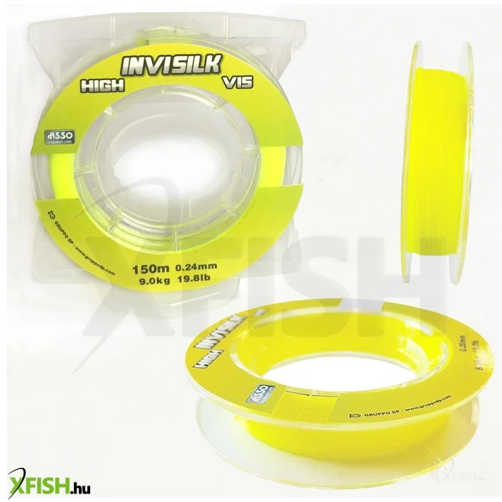 ASSO INVISILK 150m távdobó zsinór. A tavalyi évben bemutatott és néhány hét alatt nagy sikereket és népszerűséget elérő INVISILK sorozat legújabb tagja. Mint ahogy a pink sorozat az új Invisilk Yellow is a leírt és megadott adatokat tökéletesen produkálja, 100%-ig megbízható, ezért azt kapjuk a pénzünkért amit a gyártó tesztjei alapján mond és vállal. Akár azt is mondhatjuk, hogy fajlagosan olcsó zsinór, mert nem kapunk a parton idegösszeomlást mint amikor a "jó" minőségűnek titulált zsinórunk már 3. alkalommal szakad be. Az ASSO INVISILK egy igazán kiváló minőségű pontyozó és feeder horgászathoz tervezett, távdobó zsinór. Kontrollált alacsony nyúlású , mely gyors bevágásokat tesz lehetővé, hogy ne szalasszuk el a kapásokat. Speciális szilikon tartalmú UV védelmet is nyújtó bevonata kopásállóvá és hosszú élettartamúvá teszi, miközben távdobáskor is jó szolgálatot tesz, mert könnyen fut a gyűrűk és zsinórvezető- görgő között, miközben alig melegszik fel. A zsinóroknak két nagy ellensége van a nap UV sugarai és a nagy hőhatás. Az UV roncsolja a zsinór szerkezetét molekuláris szinten átrendezve azt, ezért lesz kemény és töredezett. A hő miatt pl. dobáskor keletkezett nagy hő esetén a zsinór nyúlik és keményedik ami szintén nagy szakító szilárdságbeli veszteséget jelent. Ráadásul ha nincs a zsinórnak védelme dobáskor nagy súrlódó hő keletkezik melyet tovább ront, hogy a zsinór amint a vízbe-hez ér nagyon hirtelen visszahűl(hősokk), ami szó szerint megadja neki a végső döfést. Általában ezek után a zsinór kemény lesz, könnyebben sodródik és szakad. Az INVISILK speciális bevonata már a gyártás alatt és nem csak a gyártás utáni pihentető szakaszban kerül a zsinórra, ezért a bevonat így vastagabb és tartósabb. A zsinór bevonata és speciális sárga színe miatt a vízben láthatatlan, míg a parton éppen ellenkezőleg viselkedik és jó láthatóságával segít a szerelék előkészítésében.