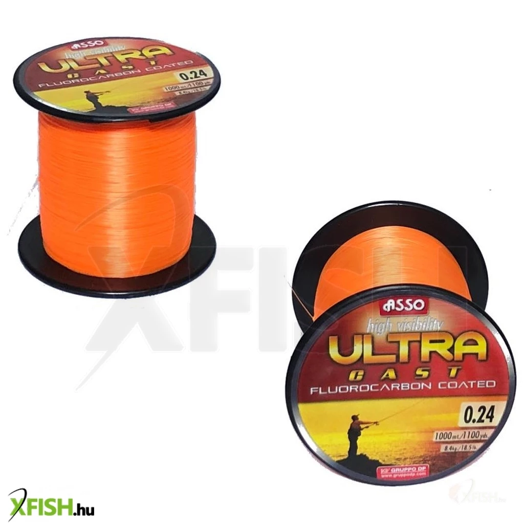 Az ASSO Ultra Cast fluorkarbon bevonatú távdobó zsinór sorozat egy kiváló sorozata a jelenleg elérhető legkorszerűbb és egyik legjobb minőségű horgász-zsinóroknak, melyek a mai legfejlettebb technológia felhasználásával készülnek. A zsinór rendkívül jól látható a parton, míg a vízben teljesen észrevétlen marad a halak számára. A bevonat másik előnye, hogy nagy mértékben csökkenti a súrlódást, ezzel is kímélve a gyűrűket és jelentősen növelve a dobások távolság. Az Asso Ultra Cast Fluorkarbon zsinórok alacsony nyúlásúak ezért magas az érzékenység faktoruk, azaz a kapásokat jól továbbítják. Az ASSO Ultra Cast Fluorkarbon bevonat a magas technológiai színvonalú gyártásnak köszönhetően tartós, évekig kitart. A bevonat miatt a zsinór felülete extrém mértékben sima és vízálló, ami azt jelenti, hogy ezek a zsinórok megtartják szinte minden erejüket és évek illetve horgászatok során sem veszítenek szakító szilárdságukból, ellentétben a hagyományos zsinórok, melyek vizet vesznek fel erejük akár 15%-al is gyengülhet. A lágyság és az alacsony nyúlás általában nem kompatibilis, és nem található meg ugyanabban a zsinórban. Ha a zsinór puha, akkor általában nagy a nyúlása, míg ha alacsony a nyúlása akkor merev, kemény. A merev, kemény zsinór viszont nehezen kezelhető, gubancolódik, lefut, illetve töredezik és könnyebben szakad. A fluorokarbon bevonat egyesítik a két kiemelkedően fontos funkciót a lágyságot és az alacsony nyúlást, amely így egy kiváló és erős távdobó zsinórt eredményez. Ettől a horgászat élvezetesebbé válik, kevesebb lesz a vak bevágás és több halat szákolhatunk meg.