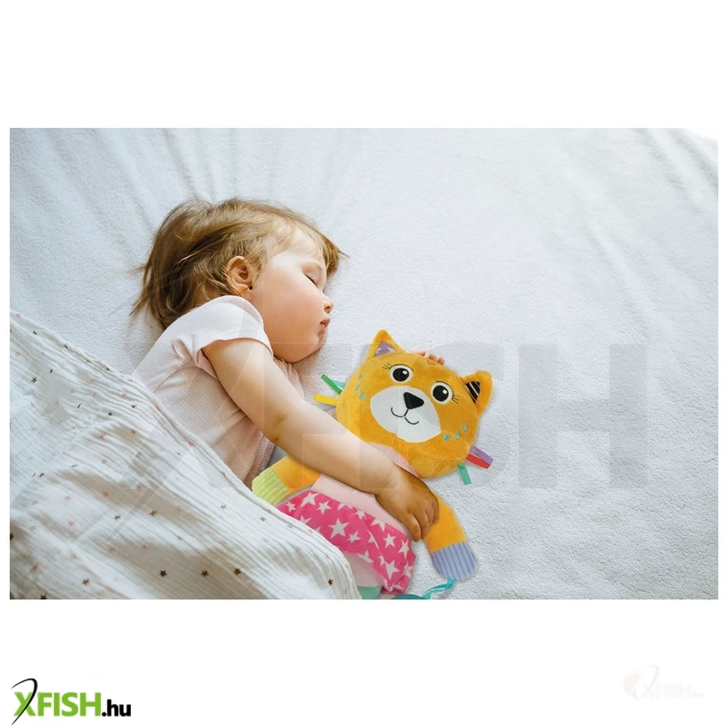 Pihe-puha plüss cicus gyermeked hű társa lehet. A plüss különböző textúrájú anyagokból készült, így a tapintás során remekül fejleszti gyermeked szenzoros képességét.