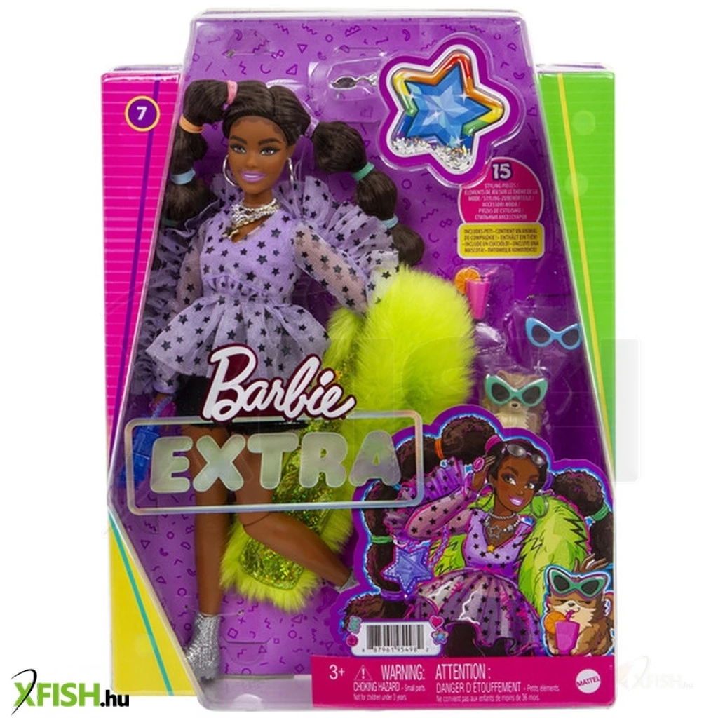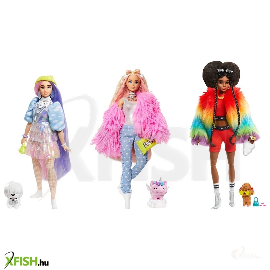 A Barbie extravagáns divatbabák csapat tagjai igazán különlegesek merész, trendi öltözékeikkel és nem hétköznapi személyiségükkel. Ennél csak az különlegesebb, ahogy kis kedvenceik kinéznek. Ők bizonyítják azt a híres mondást, miszerint a \',stílus maga az ember\',. A mozgatható testrészekkel rendelkező baba és a különleges kisállat mellett több mint 10 extra(vagáns) divatkiegészítőt is tartalmaz a csomag. Amilyen egyedi a baba, olyan egyedülálló a csomagolás - a visszazárható, feltűnő színekkel és a Barbie baba dzsekijével megegyező, különleges tapintású borítással, konfettivel és ezüst, hologrammos anyagból készült Barbie logóval díszített doboz.