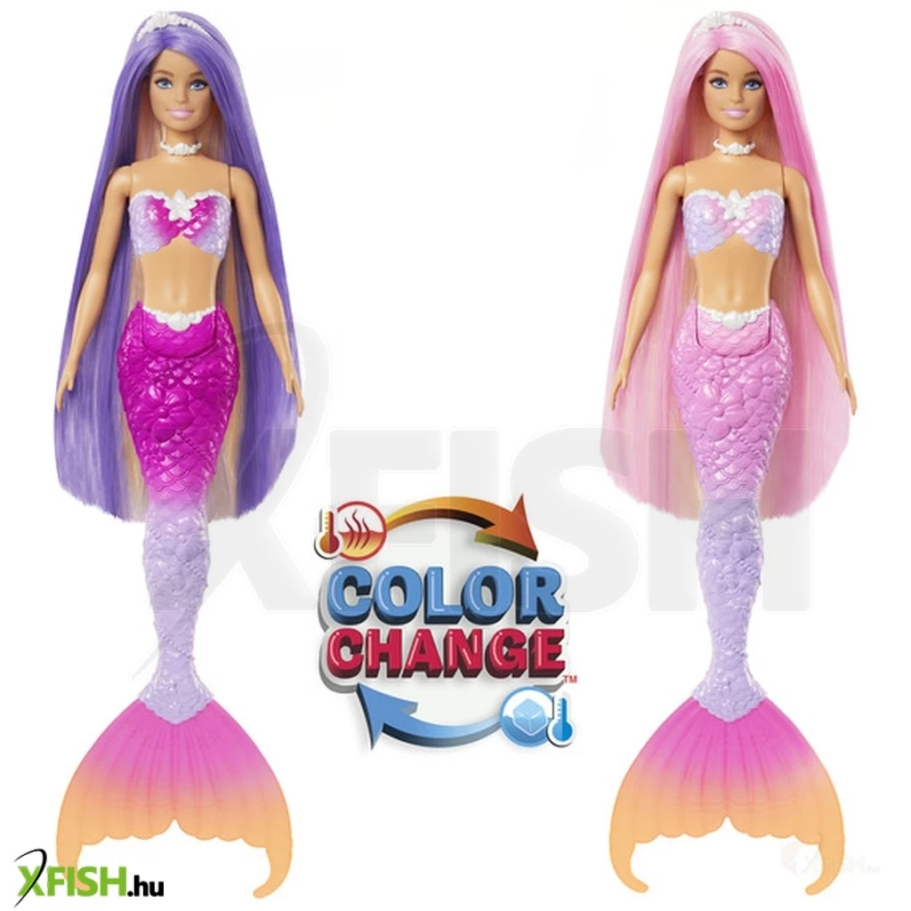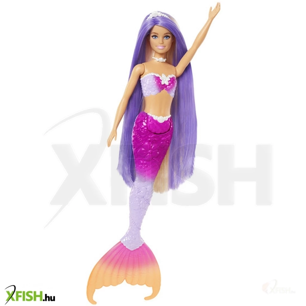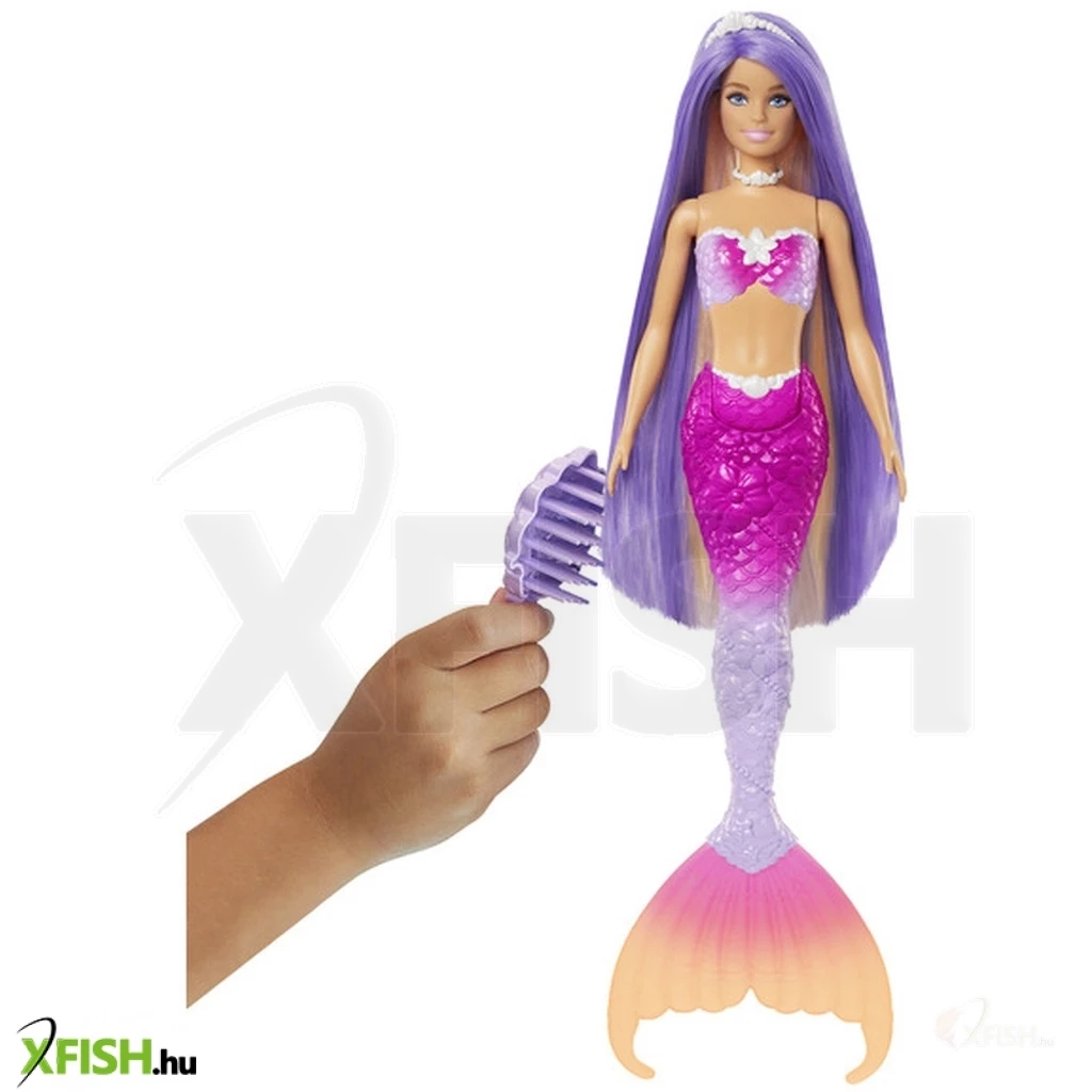 Ez a sellő Barbie baba színváltó funkcióival a játékidőt tiszta varázslattá változtatja! Mintha a tenger alatti erők varázsolták volna el, a sellő szuperhosszú haja, faragott mídere és ombre farka rágógumi rózsaszínből élénk lilára változik, majd vissza. Barbie \\\\',,,,Malibu\\\\',,,, stíluskiegészítőkkel, ecsettel és egy imádnivaló kisállattal érkezik.