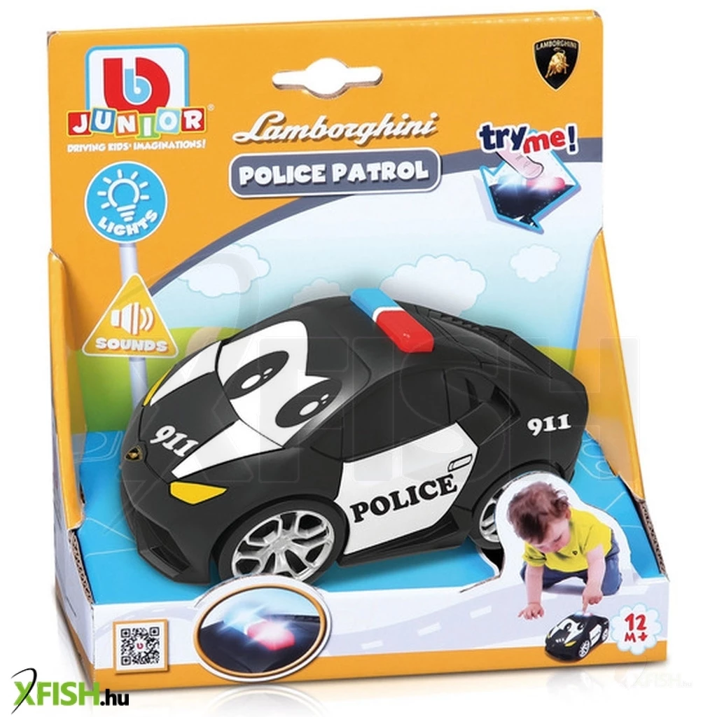 Gurítsd kedvedre új rendőrautódat és kapd el a banditákat! A Bburago Jr. - Lamborghini rendőrautóval most nyakadba veheted a várost! A fekete rendőrautó szirénázik és világít ha megnyomod a tetejét, így igazán izgalmas lesz a játékélmény! Gurítsd kerekein a közszolgálati autót és figyeld meg, milyen sokáig elgurul egyetlen lökésedtől! A műanyagból készített játék kb. 20 centiméteres átmérőjének köszönhetően, akár kisebb gyermekek is magukhoz foghatják és gurítgathatják a vidám járművet. Az érdekes funkciókkal rendelkező kocsit biztosan szeretni fogják az autórajongó gyermekek, miközben kreativitásukat használva lebilincselő rendőrös történeteket alkothatnak. A lekerekített külsejének és a könnyű anyagának köszönhetően a játék teljesen megbízható és biztonságos bármelyik korosztály számára. A Bburago Jr. - Lamborghini rendőrautó tartalmazza a játékkocsit és a 2 db AAA mikro ceruzaelemet, mely az interaktív funkciókat működteti. A rendőrautót 1 éves kortól ajánljuk.