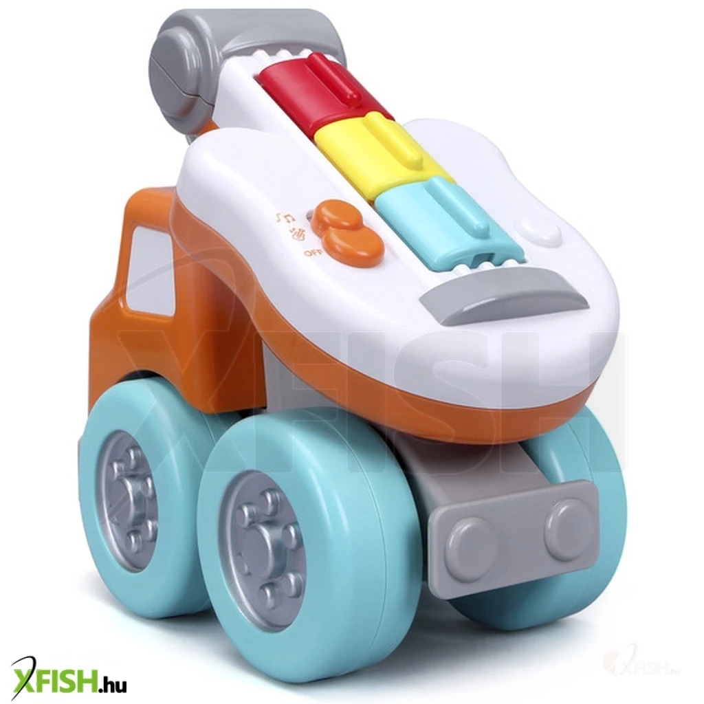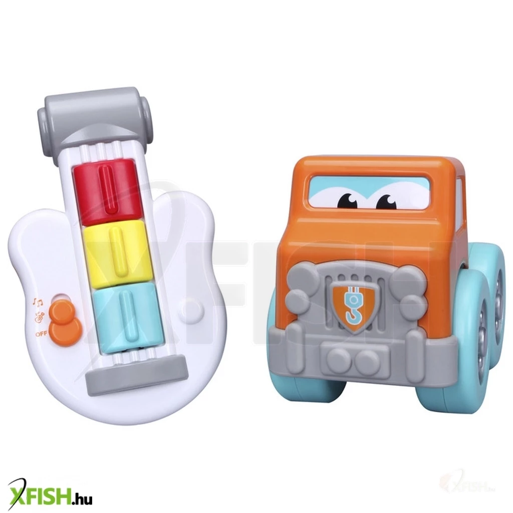 Ez a kedves, színes teherautó levehető gitárja három billentyűvel és különböző előre beállított hangokkal gondoskodik a kicsik szórakoztatásáról. A zenélő játék móka közben fejleszti a szem-kéz koordinációt is. A termék mérete : kb. 13 cm.