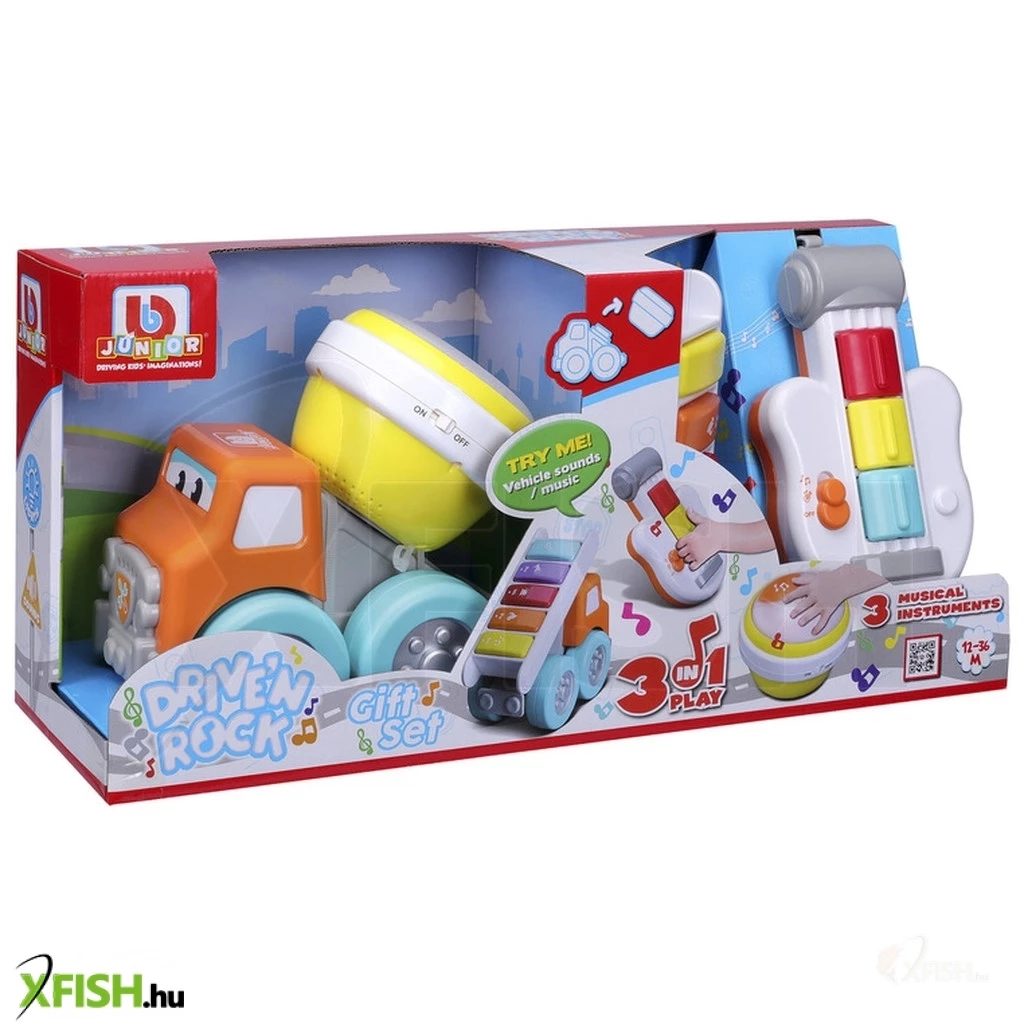A Bburago Jr. - Teherautó hangszerekkel játék tartalmazza a gitárt, a dobot, a zongorát és magát a járművet. Az interaktív kisautó elemmel működik. A játékot 1 éves kortól ajánljuk.