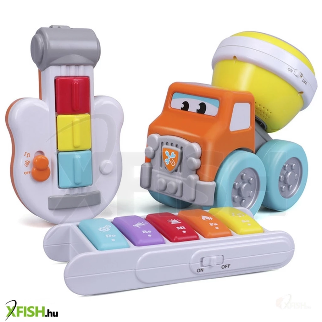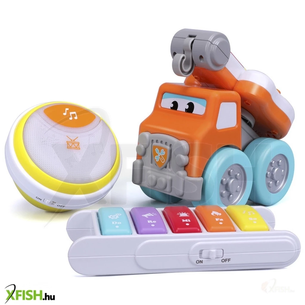 Narancssárga járműved platóján különböző hangszerek utaznak, vedd le őket és csapj egy hatalmas mulatságot! Pengesd meg a gitár húrjait, püföld a zongora billentyűit, majd csapj a dobok közé ezzel fantasztikus dallamokat megalkotva! Mókás autód gurítható kerekeinek köszönhetően bárhová képes eljutni, így elszállíthatod kedvenc hangszereidet. A nagy zenés kalandok során pedig fejlesztheted ritmusérzékedet és kreativitásodat. Az autóra bármelyik hangszer külön is felkapcsolható, így különleges módokon tudod megszólaltatni járművedet. Éld át a zenélés adta kreatív pillanatokat és nyűgözd le közönségedet!