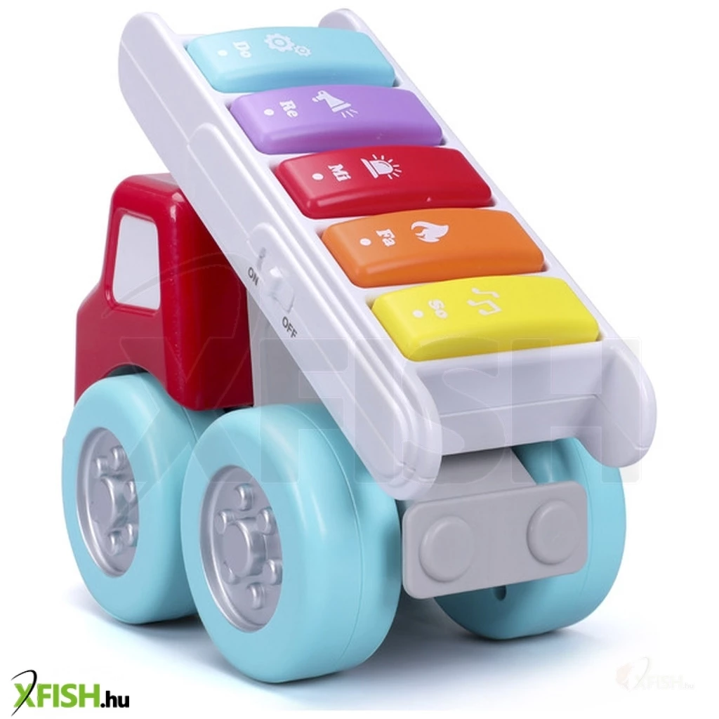 Ez a kedves színes teherautó levehető zongorája öt billentyűvel rendelkezik, különböző előre beállított hangokkal gondoskodik a kicsik szórakoztatásáról. A zenélő játék móka közben fejleszti a szem-kéz koordinációt is. A termék mérete : kb. 13 cm.