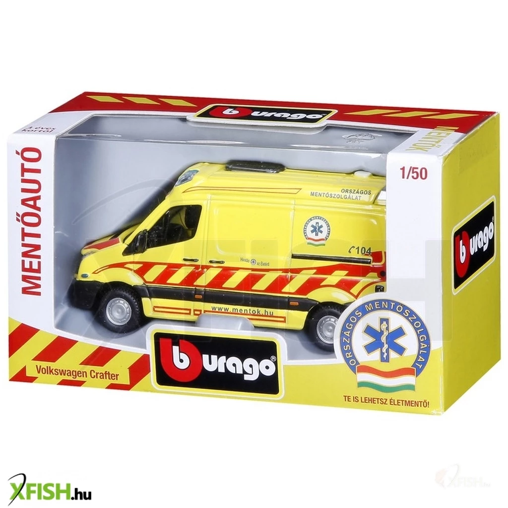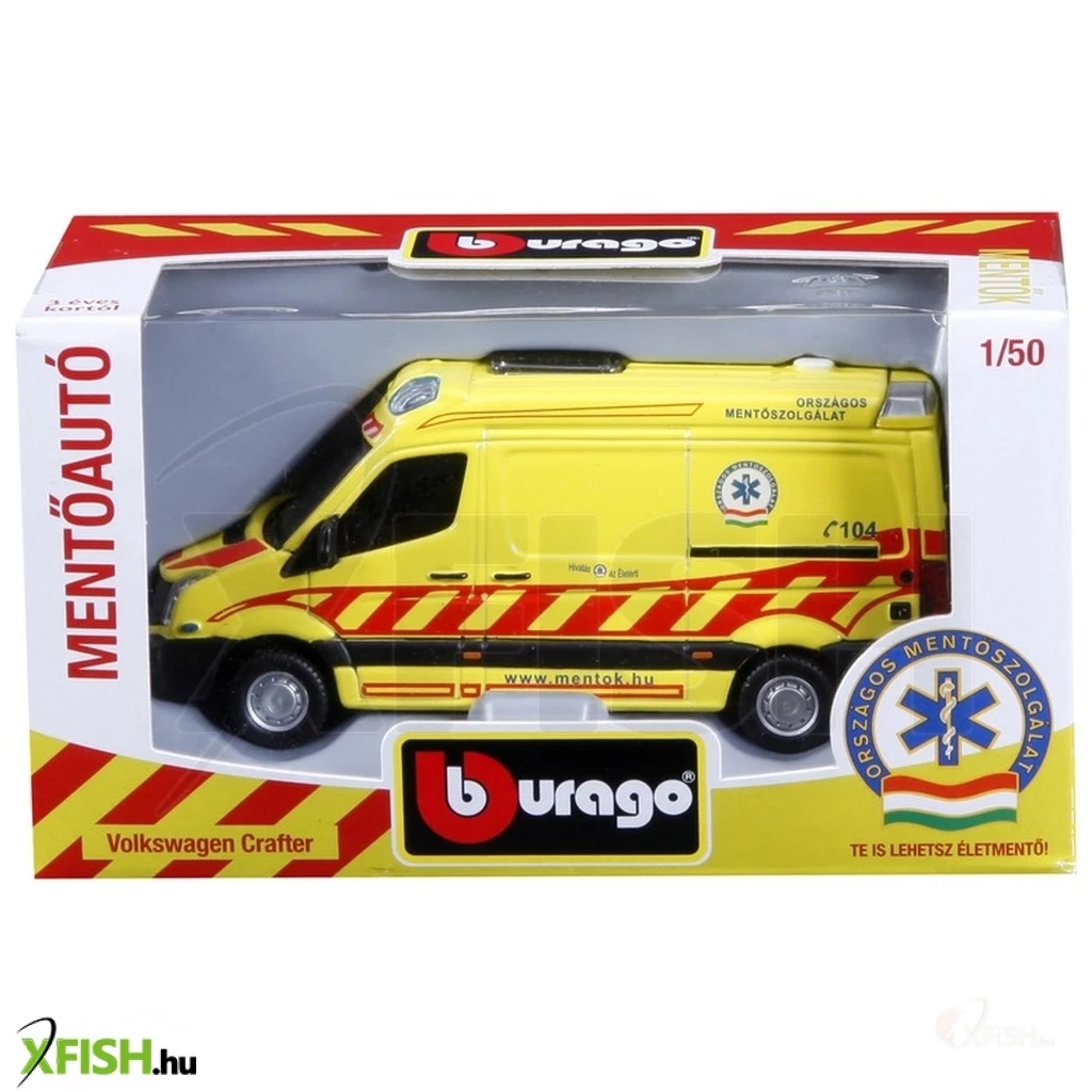 Bburago gyártmányú 1/50 méretarányú magyar mentőautó modell, amely az Országos Mentőszolgálat engedélyével készült. A modell a 2013-ban forgalomban lévő VW cratfer esetkocsik eredeti licence alapján készült. Az autó mellé elsősegély-könyvjelzőt is csomagoltunk a jövő életmentőinek.