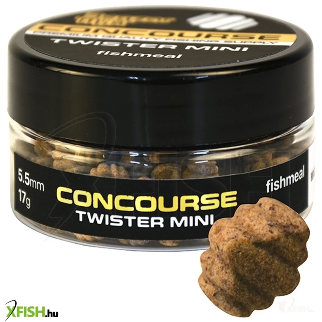 A Concourse Twister Minik, hasonlóan a nagytestvérükhöz, szimmetrikus, körkörös alakjuknak köszönhetően olyan formavilágot jelenítenek meg, amely abszolút ismeretlen a halak számára és, amely megannyi variációs lehetőséget rejt. Az újdonság varázsa pedig, tudjuk jól, hogy a kapások számának drasztikus megemelkedésével jár! A csalik gyári állapotukban 5,5 mm hosszúak és kétszínű kivitelben készülnek nagyon erős, fogós, kedvelt aromákban, melyek a csoki-narancs, a faeper, a mangó, a halliszt, a sajt-vajsav, az eper-tintahal, a fokhagyma-mandula és a krill.