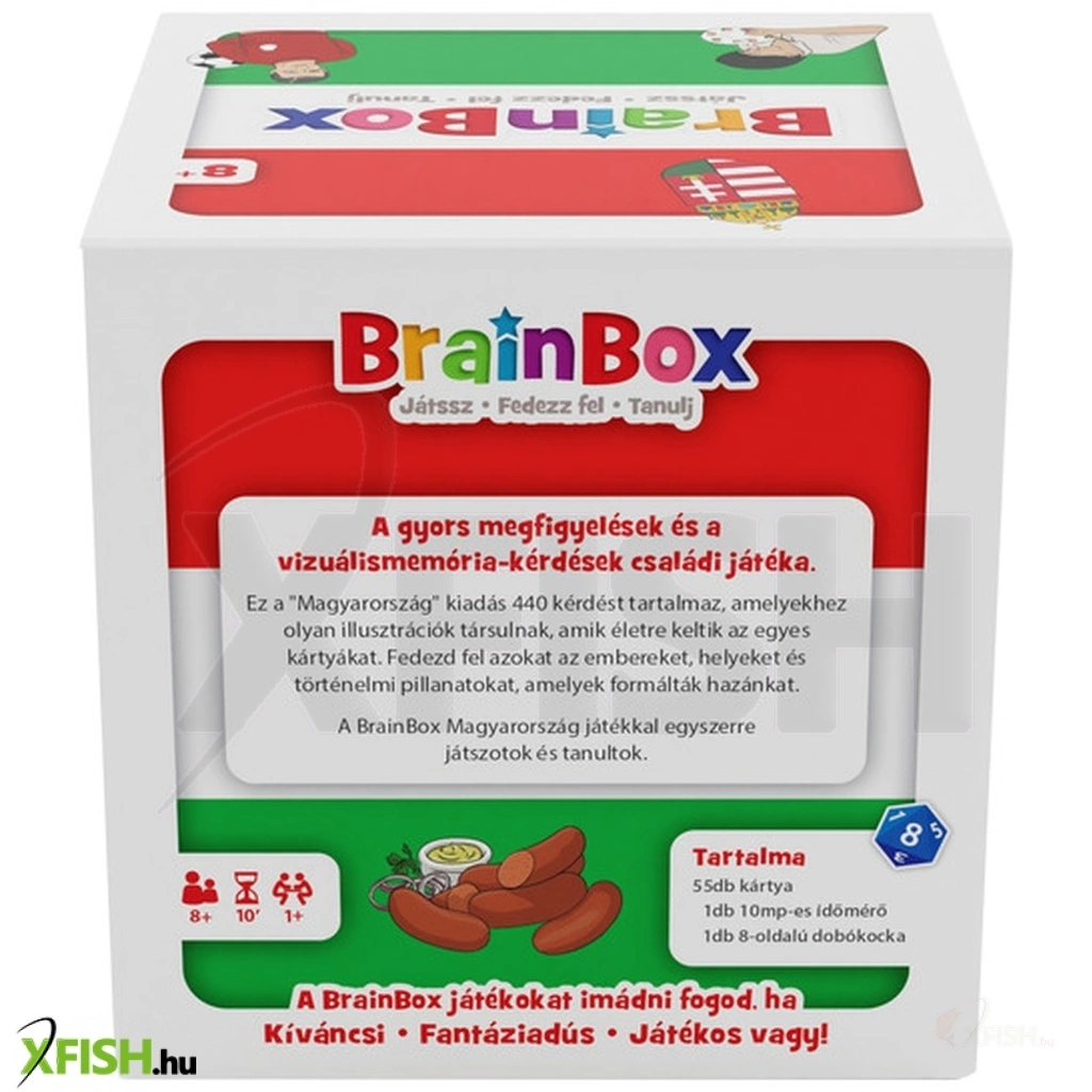 A BrainBox - Magyarország egy szuper agytorna az egész család számára! Kérdés az: Mit jegyzel meg 10 másodperc alatt--- Ez a Magyarország kiadás 440 db kérdést tartalmaz, szép, színes illusztrációkkal. Ismerkedj meg játékosan azokkal az emberekkel, helyekkel és történelmi eseményekkel, amik eddig formálták az országunkat!