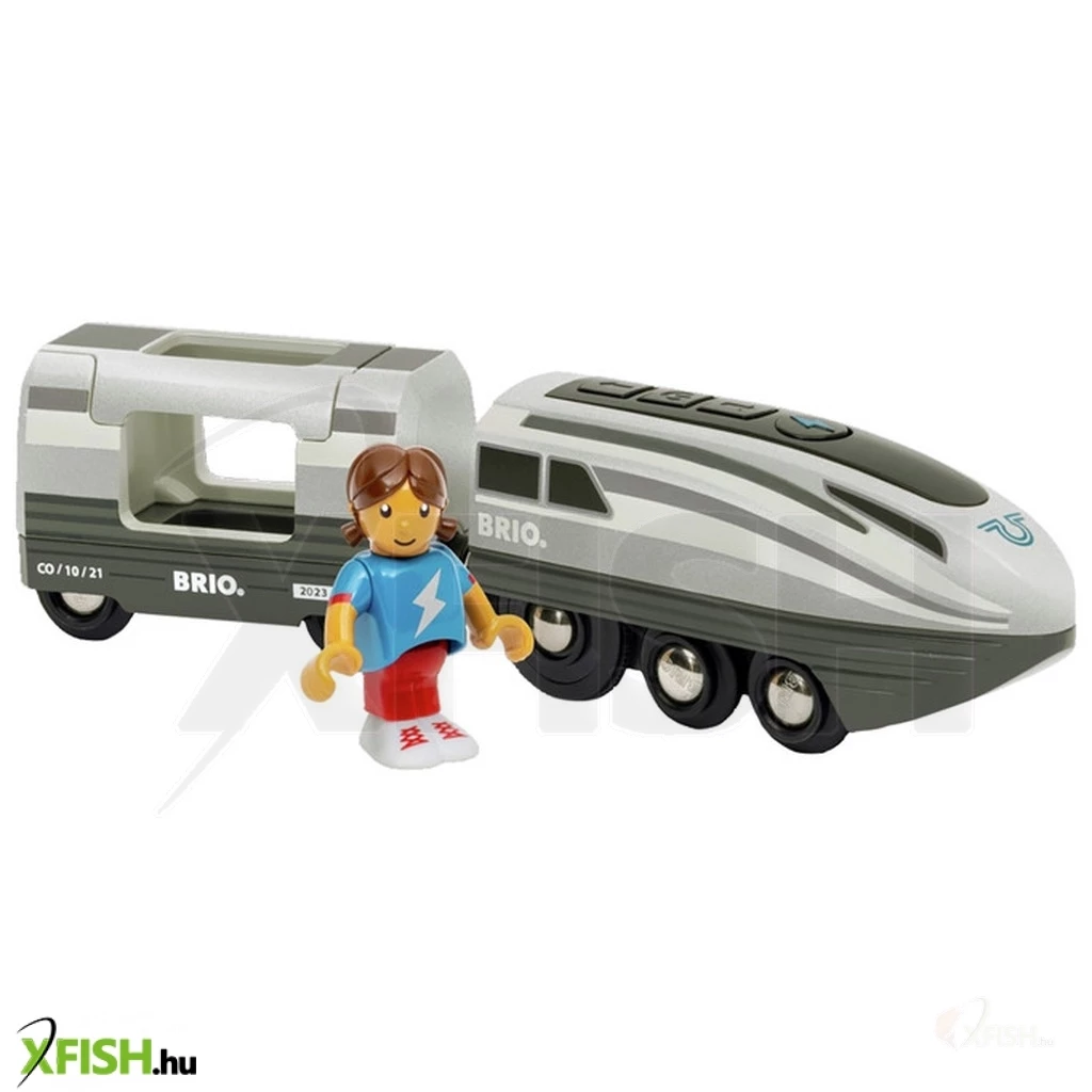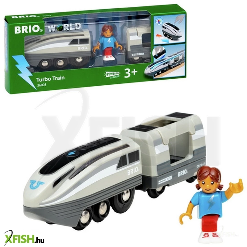 Még nagyobb sebességet visz a sínekre: A 36003-as turbóvonat. Csak nyomja meg a nagy turbógombot, és ez az elemmel működő játékmozdony megduplázza sebességét. Ezzel a Brio világ leggyorsabb mozdonya. A turbóerősítés 5 másodpercig tart, és ahogy a mozdony száguldozik, az oldalsó fehér fénycsíkok hideg kékre váltanak. A futurisztikus kialakítású mozdony személykocsit is húz egy utas számára. A vonattal való valósághű játék játékos formában segíti elő a gyerekek környezetismeretét, miközben fejleszti a finommotorikát. A Brio Worldről: A Brio World a mi korlátlan játékrendszerünk, amely gyermekével együtt fejlődik. Minden Brio World játék illeszkedik egymáshoz, és kombinálható játékvilággá, amely ideális a gyermekek fejlődésének elősegítésére. A végtelen fantáziadús játéklehetőségek csak felfedezésre várnak.