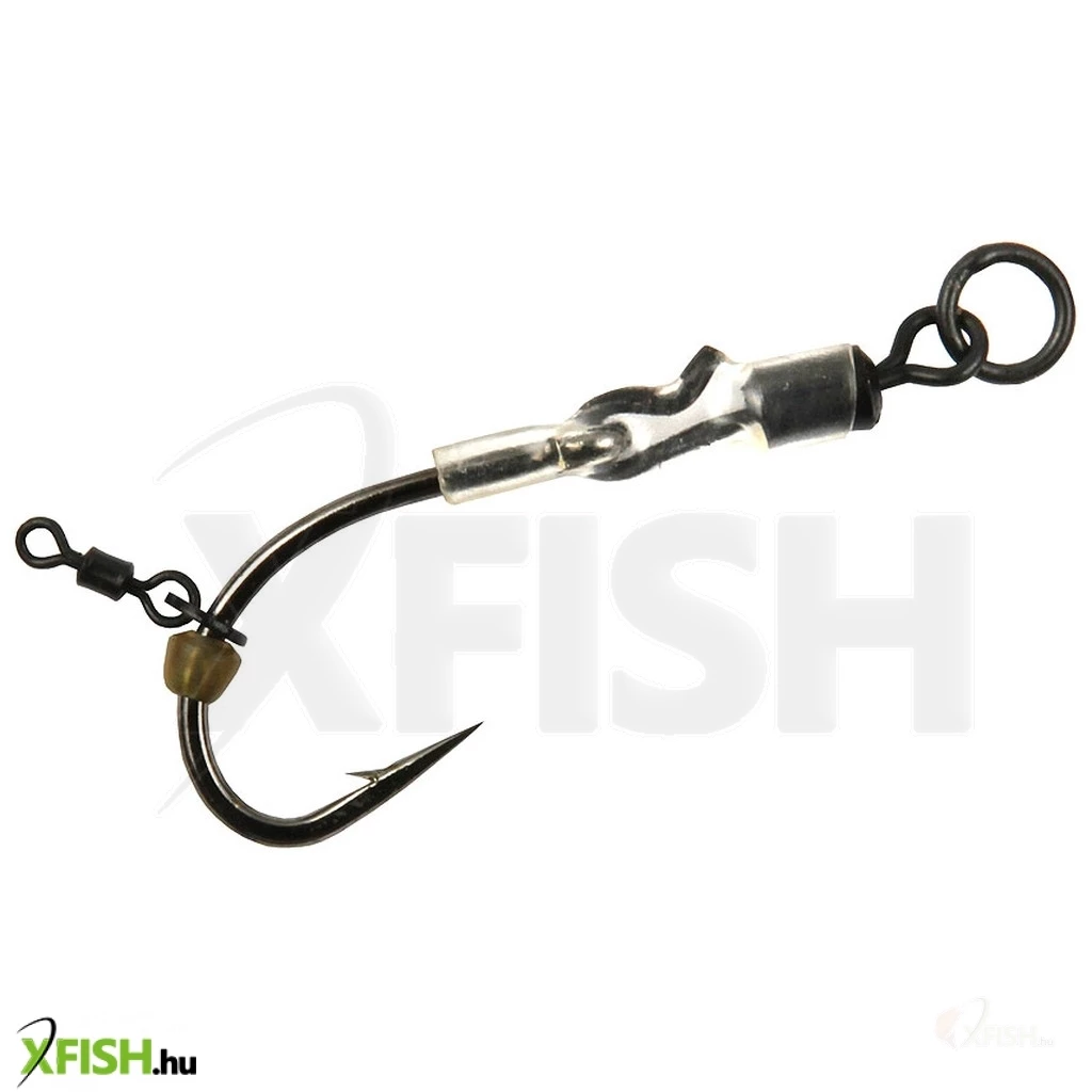 A horog füléhez csatlakoztatható a gyorskapocs, amely így súlyával az aljzaton tartja a horgot, karikás része pedig szabadabban rögzül az előkéhez.