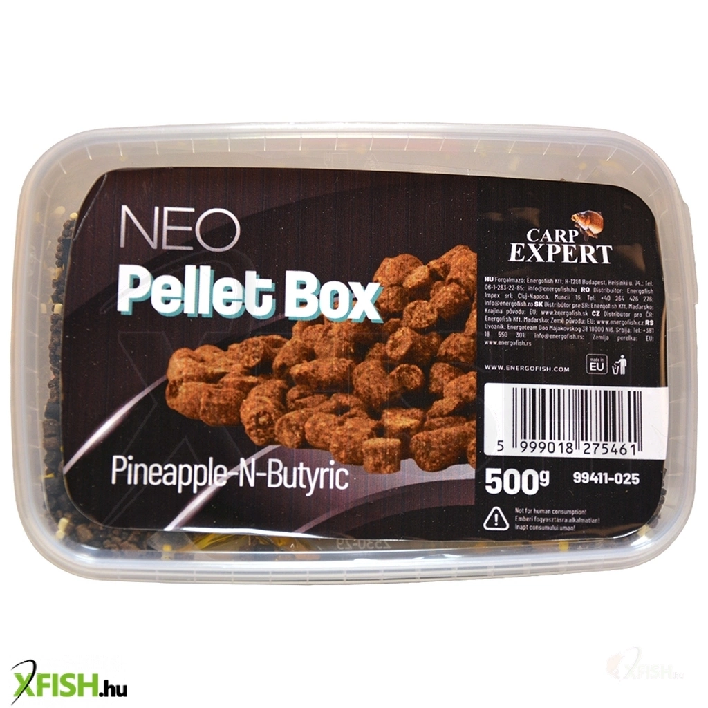 A Carp Expert Neo Pellet Box ideális választás ponty, kárász és amur horgászatához, különösen method feeder vagy pellet alapú etetési technikák esetén. Többféle ízben érhető el (például mangó, ananász, citrus, kagyló vagy eper-polip), így a horgász könnyen a víz adottságaihoz és a halak táplálkozási kedvéhez igazíthatja az etetést.
