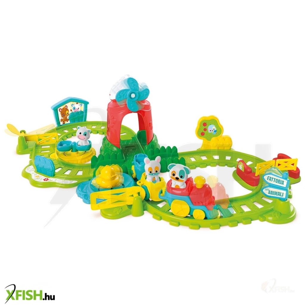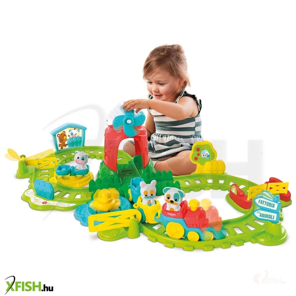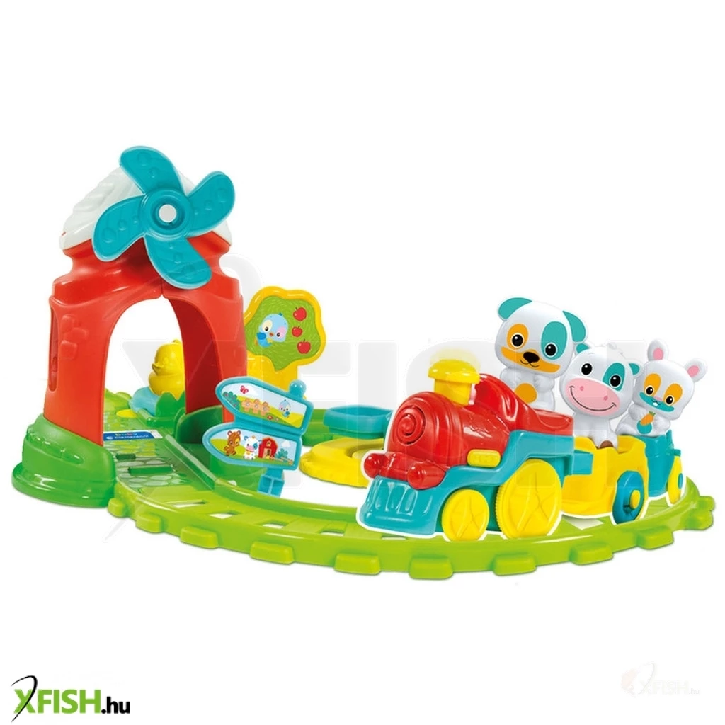 A vonat egy nyolcas alakú pályán halad körben, tanyasi környezetben. A kémény megnyomásával a vonat fantáziadús utazásra indul a kis barátokkal: kutyussal, tehénnel, nyuszival és kiskacsával. A gazdaság életre kel, ahogy a vonat körbe halad: a sorompó felemelkedik, a malom forogni kezd, a kakas és a kiskacsa pedig ismert hangokat adnak ki. A sárga kapu bezárásával a kiskacsa szinte úszik a tóban, és a körhinta is mozog. A játék fejleszti a kézügyességet, a kéz-szem koordinációt és a képzelőerőt.