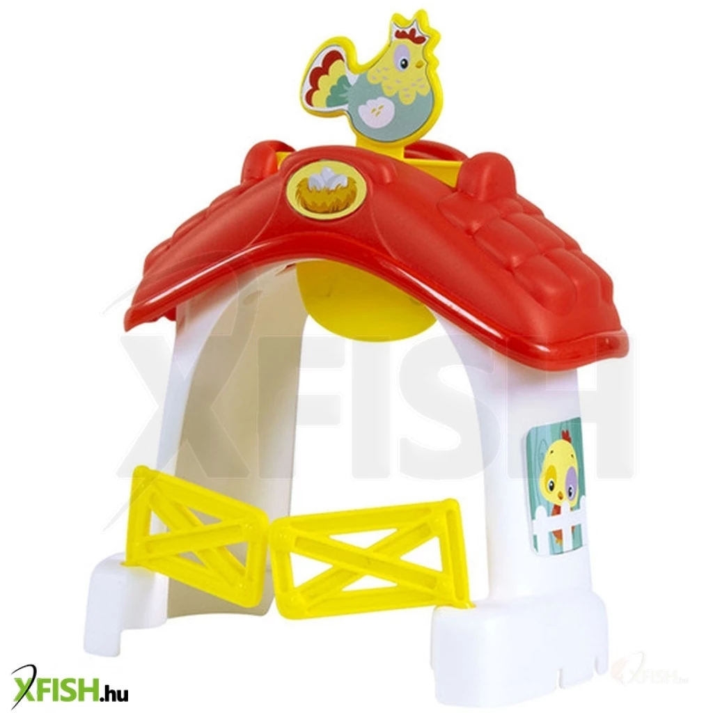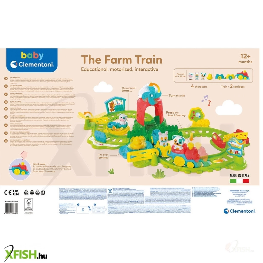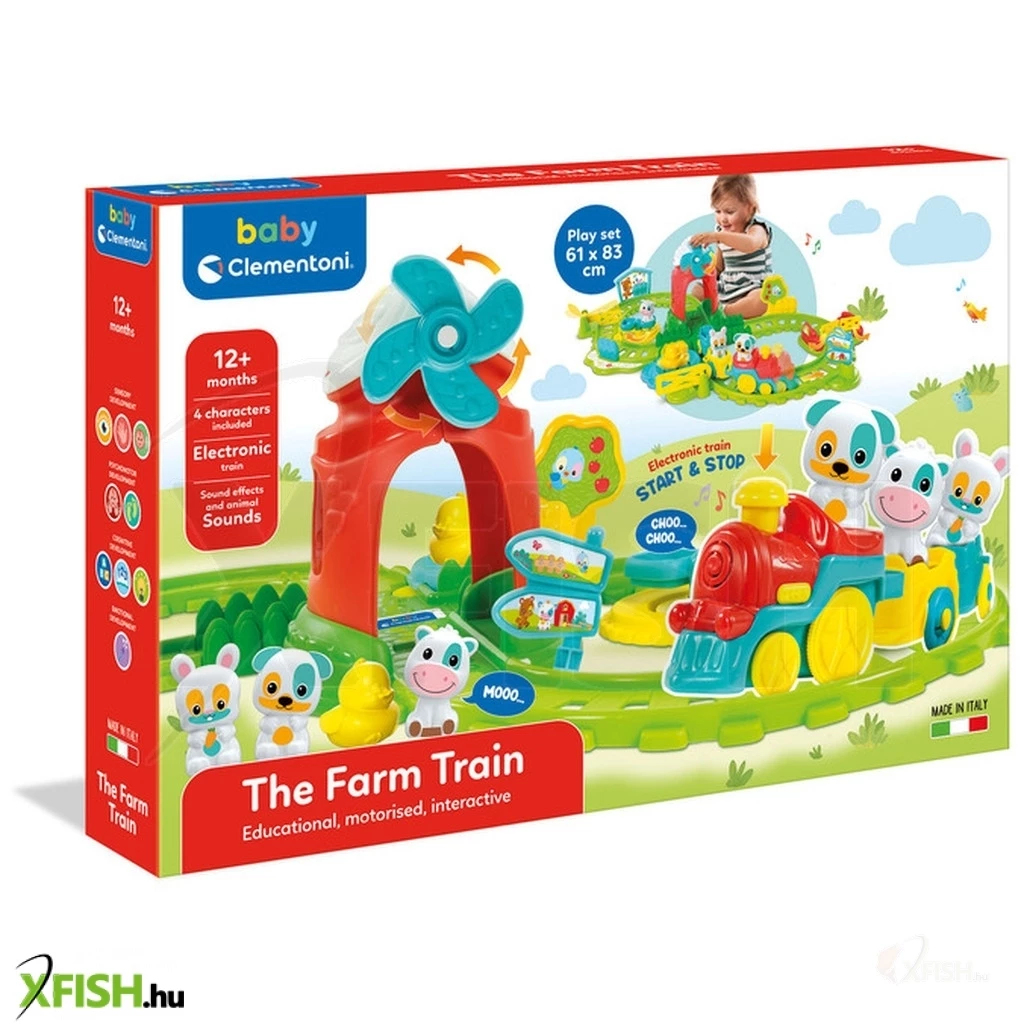 A vonat egy nyolcas alakú pályán halad körben, tanyasi környezetben. A kémény megnyomásával a vonat fantáziadús utazásra indul a kis barátokkal: kutyussal, tehénnel, nyuszival és kiskacsával. A gazdaság életre kel, ahogy a vonat körbe halad: a sorompó felemelkedik, a malom forogni kezd, a kakas és a kiskacsa pedig ismert hangokat adnak ki. A sárga kapu bezárásával a kiskacsa szinte úszik a tóban, és a körhinta is mozog. A játék fejleszti a kézügyességet, a kéz-szem koordinációt és a képzelőerőt.