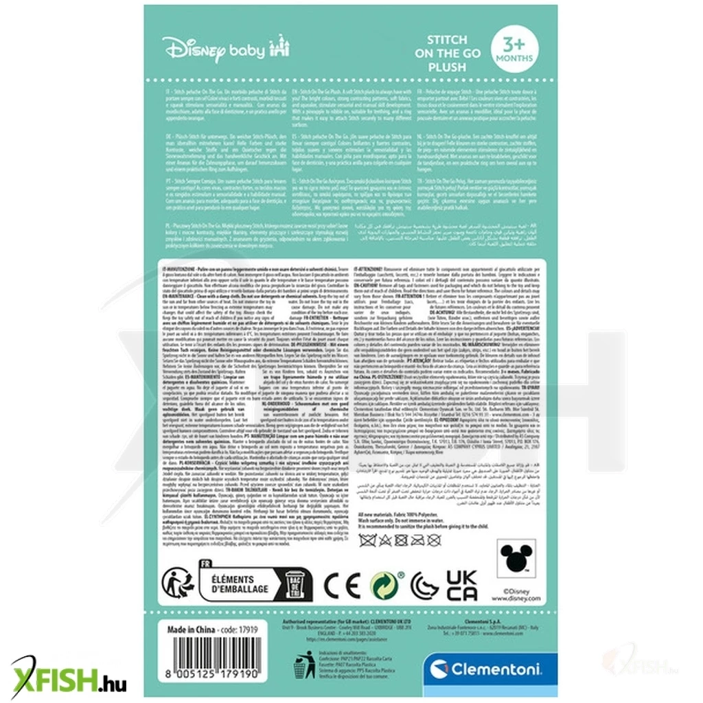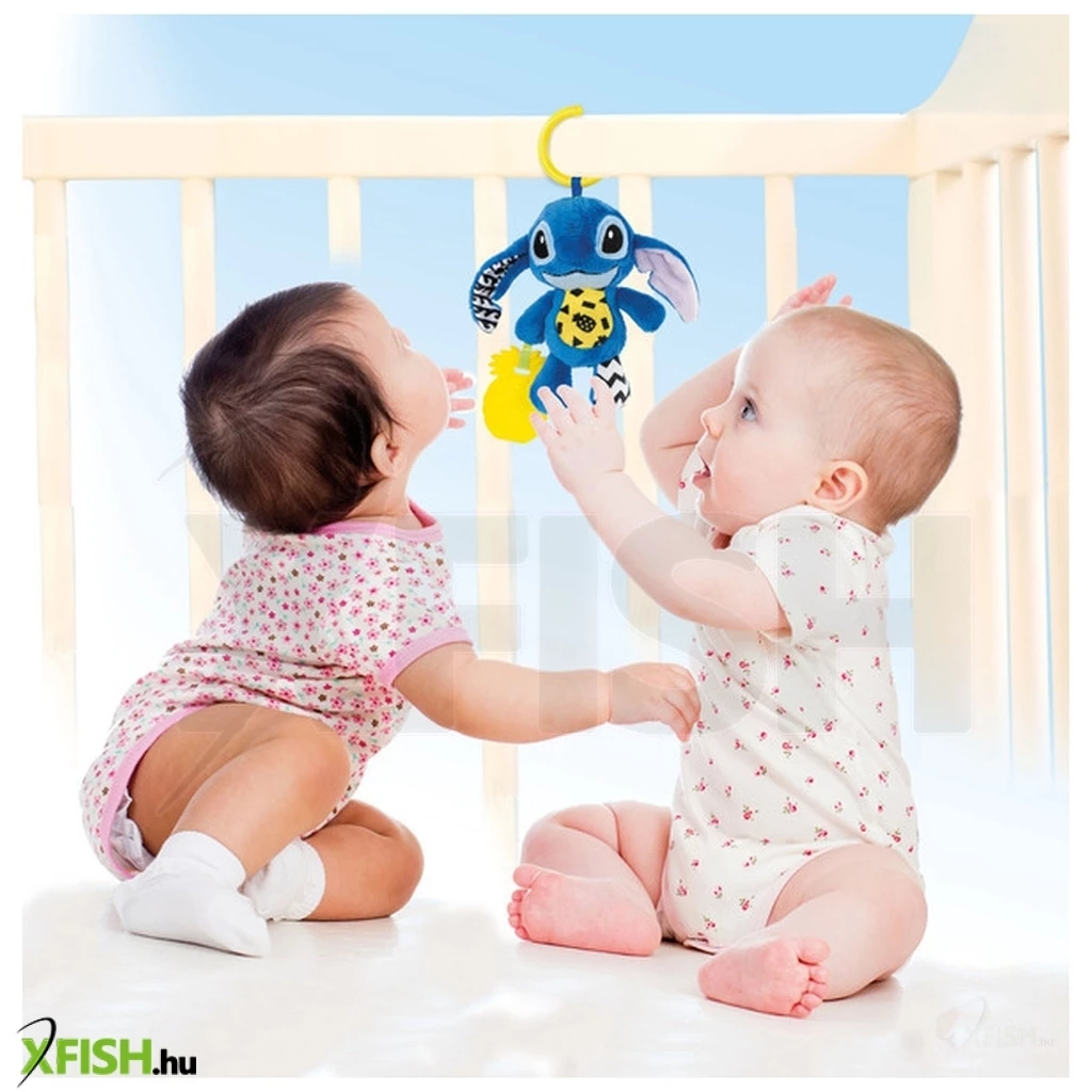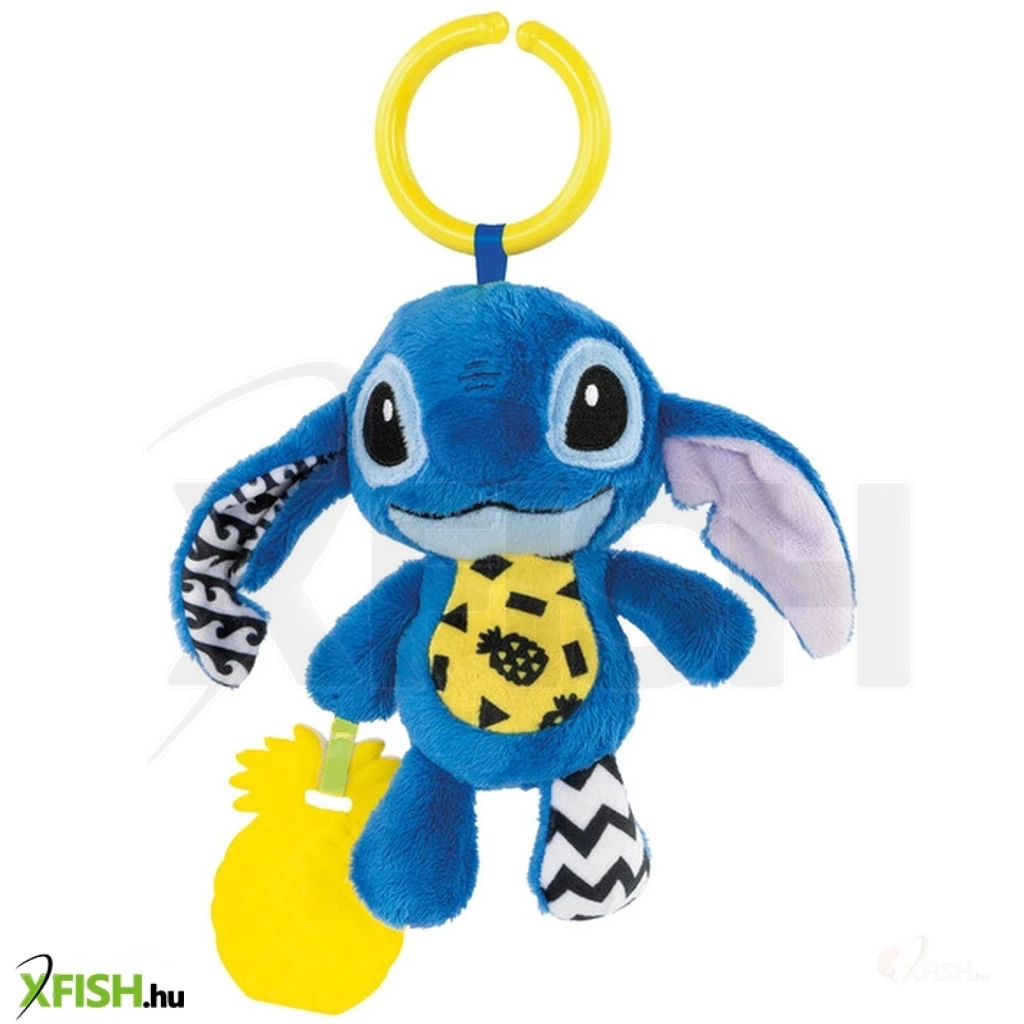 Puha Stitch plüssjáték a babák szórakoztatására multiszenzoros elemekkel. Könnyen megfogható és kezelhető, a nyikorgásnak és a különböző anyagok keverékének köszönhetően segíti az érzékszervi fejlődést. Az ananász rágható. A praktikus gyűrűvel a Stitch babakocsira, kiságyra vagy bárhová felakasztható, hogy bárhová magával vihesse a gyermek. Segíti a hallásfejlődést és a kézügyességet, valamint erősíti a motoros és érzékszervi képességeket. Korai gyermekkori játék, amely tökéletes ajándék újszülötteknek.