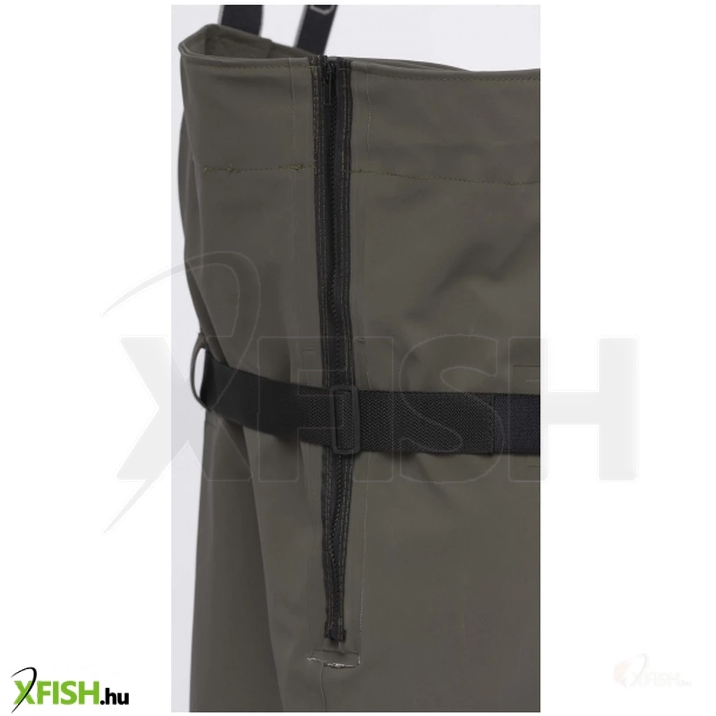 D.A.M FLEXFIT mellescsizma. Rendkívül megbízható, erős, kiváló minőségű, mellescsizma az új, innovatív vízhatlan oldalsó cipzárral! Az oldalsó cipzár megkönnyíti nagy mértékben a mellescsizma felhúzását, míg az új innovatív mérnöki kivitelezésnek köszönhetően nem ázik be. Kemény, kiváló minőségű Plavitex HD 700 PVC szövet külső, puha, rugalmas poliészter anyagból készült belső résszel. 100% -ig vízálló, mivel a varratok visszahajtottak és hő+ragsztóanyaggal úm. hegesztettek, így maximális biztonságot adnak. Erős, nagyméretű oldalsó cipzárak, amellyel mindkét oldallap el van látva a felső részén, a tökéletes használhatóság, kényelem és rugalmas illeszkedés érdekében. Kettős réteggel megerősített térd rész. Kiváló minőségű elasztikus vállpántok, erős csattal. Belső vízhatlan zseb és a a jobb illeszkedés érdekében rugalmas pánt a mellkas körül. Kényelmes, jól viselhető csizma, sár-talppal.