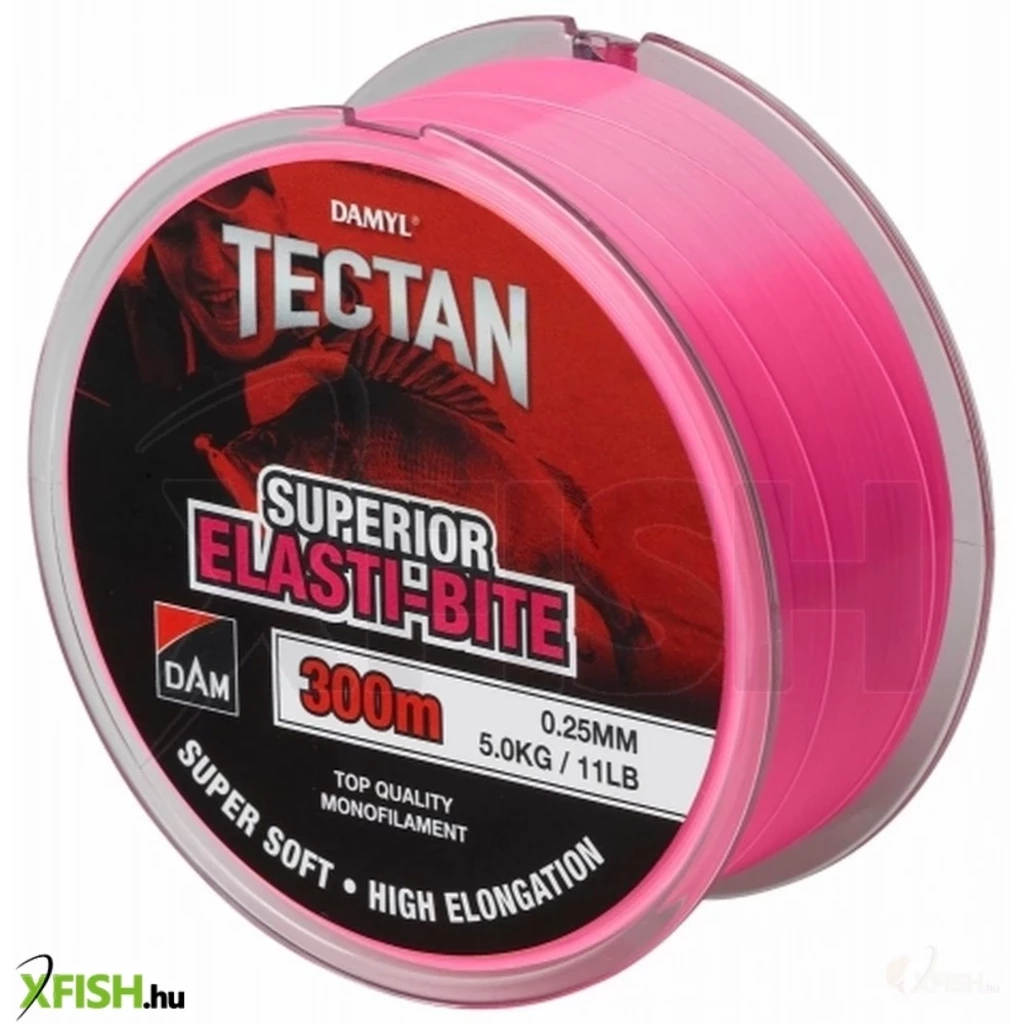 D.A.M TECTAN SUPERIOR ELASTI-BITE. Extrém kopásálló monofil zsinór a távdobó horgászoknak. Kellemesen lágy, mégis közepesnyúlással rendelkező, kopásálló, extrém körülményeket tűrő, az agresszív halak megfékezésére fejleszett damil, null memoriával. A TECTAN SUPERIOR ELASTI-BITE zsinórt extrém igénybevételre fejlesztették ki. A "zéró memória" és az egyedi, szerkezete lehetővé teszi, hogy a legszélsőségesebb körülmények között is sikeresek legyünk. Emellett a zsinór speciális kezelésének köszönhetően nagy távolságú dobások elvégzésére is képes. Ugyanakkor ennek a kezelésnek a hatására a zsinór kopásállósága is nagymértékben megnövekedett. A rablóhalas és nagy-pontyhorgászat összes stílusához igazodó méretekben, 300mt-es kiszerelésben került forgalomba. Az Elasti-Bite zsinór LOV-VIS azaz a vízben nem látható mert a felületének fénytörése egyezik a vízével.