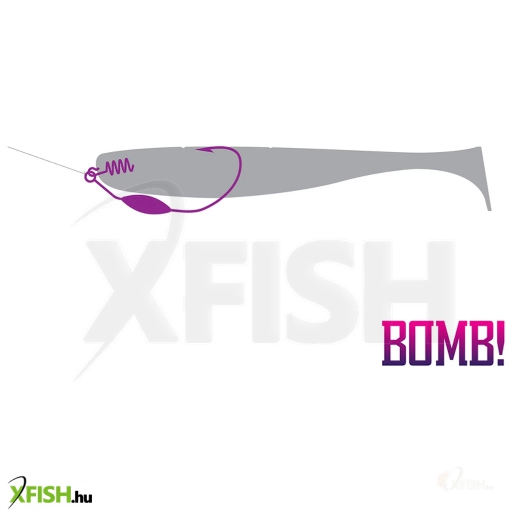 A BOMB! HeavyShank horog lehetővé teszi Önnek a legbenőttebb helyeken, akadók között való horgászatot. Az egyedi csalirendszer amelyen a horogszemre erősített csavar megkönnyíti a műcsali felfogatását, mivel egyszerűen a csavart beletekeri a csaliba, majd a horoggal átszúrja. A horog speciális alakján köszönhetően a horog hegyét elrejti a csaliban, így nem akad meg az akadóban, de a puha műcsalival párosítva könnyedén megakasztja a ragadozó halat. A horgon lévő súly úgy lett megtervezve, hogy a műcsali jól mozogjon a vízben. Az ideális csali megválasztásában segít a különböző súly és horogméret variációk.