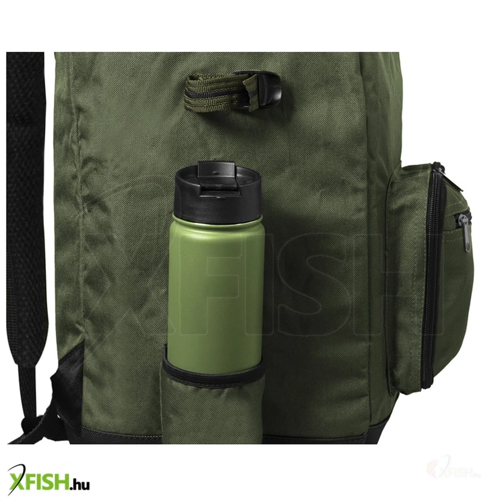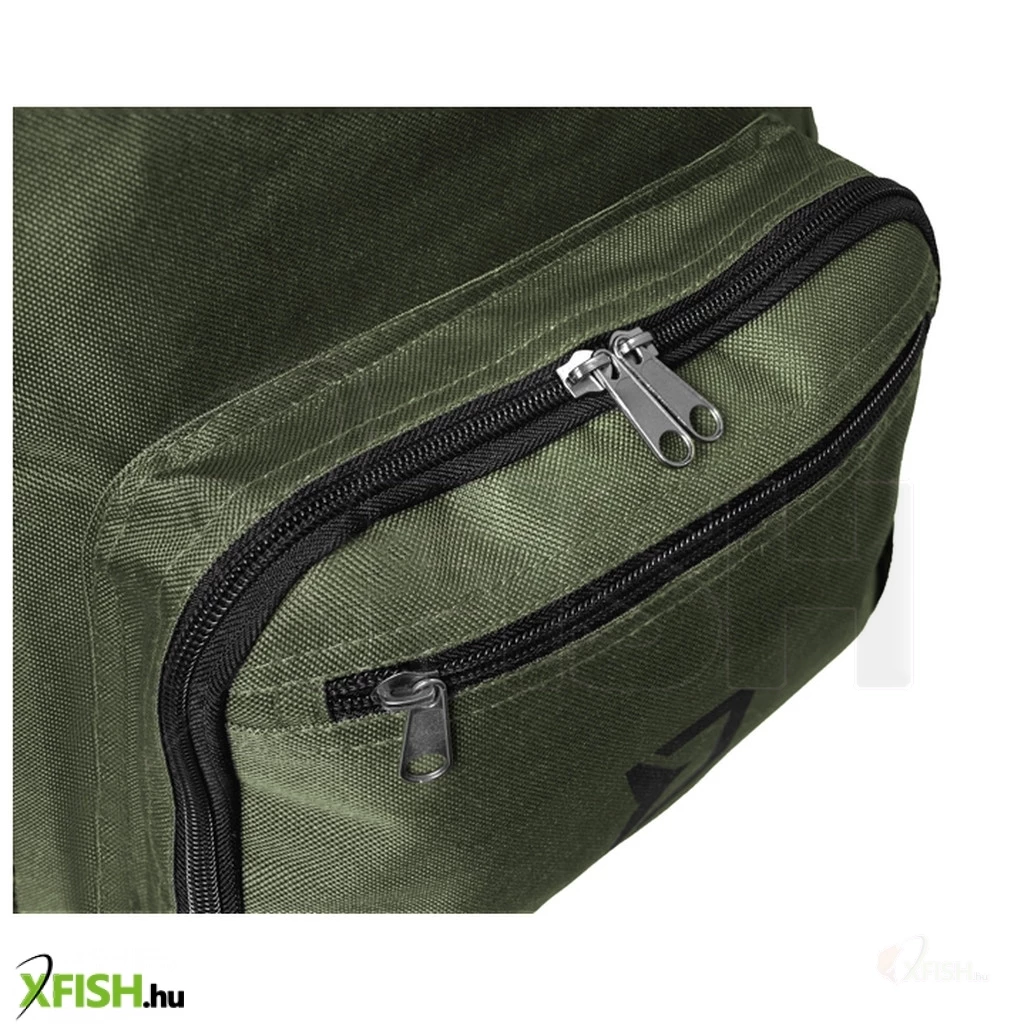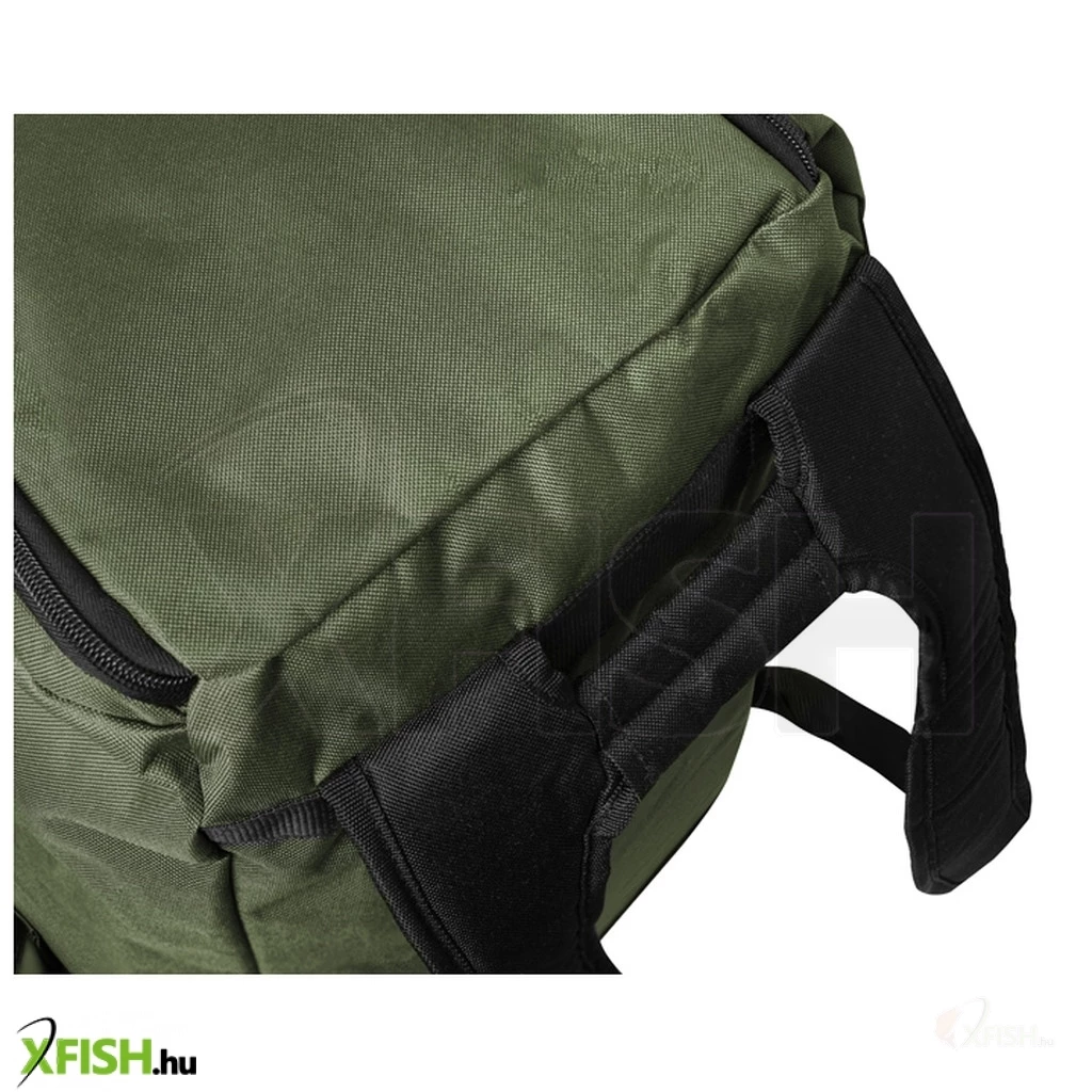 Kitűnő társ horgászatra. Így jellemezhető a Delphin CLASSA hátizsák. A hátizsák nem bélelt jó minőségű zöld színű anyagból varródott. Ráadásul alulról gumírozott nem vízáteresztő réteggel van ellátva, így gond nélkül leteheti a vizes fűre. A CLASSA hátizsáknak a nagy központi rekeszéhez jó a hozzáférés, amelyet a nagy minőségi cipzárral ellátott felső fedél biztosít. A hátizsák elején nagyobb zseb található, melyen ráadásul cipzáros rekesz is van. Ide könnyedén elteheti iratait, pénztárcáját vagy mobil telefonját. Mindkét oldalán nyitott zsebek találhatók fölöttük két hevederrel. Alkalmasak például hosszabb dolgok, mint a leszúrók vagy bizonyos típusú botok tartására. Természetesen tarthat benne karcsúbb üveg vizet vagy termoszt. Ennek a hátizsáknak a vitathatatlan előnye a jó minőségű és habszivaccsal párnázott vállpántok, melyek csökkentik a vállra nehezedő nyomást, ha egy teljesen megpakolt hátizsákot visel. A vállpántok a felső részükön össze vannak kötve, így egy jól megragadható fül jött létre a kézben hordáshoz.