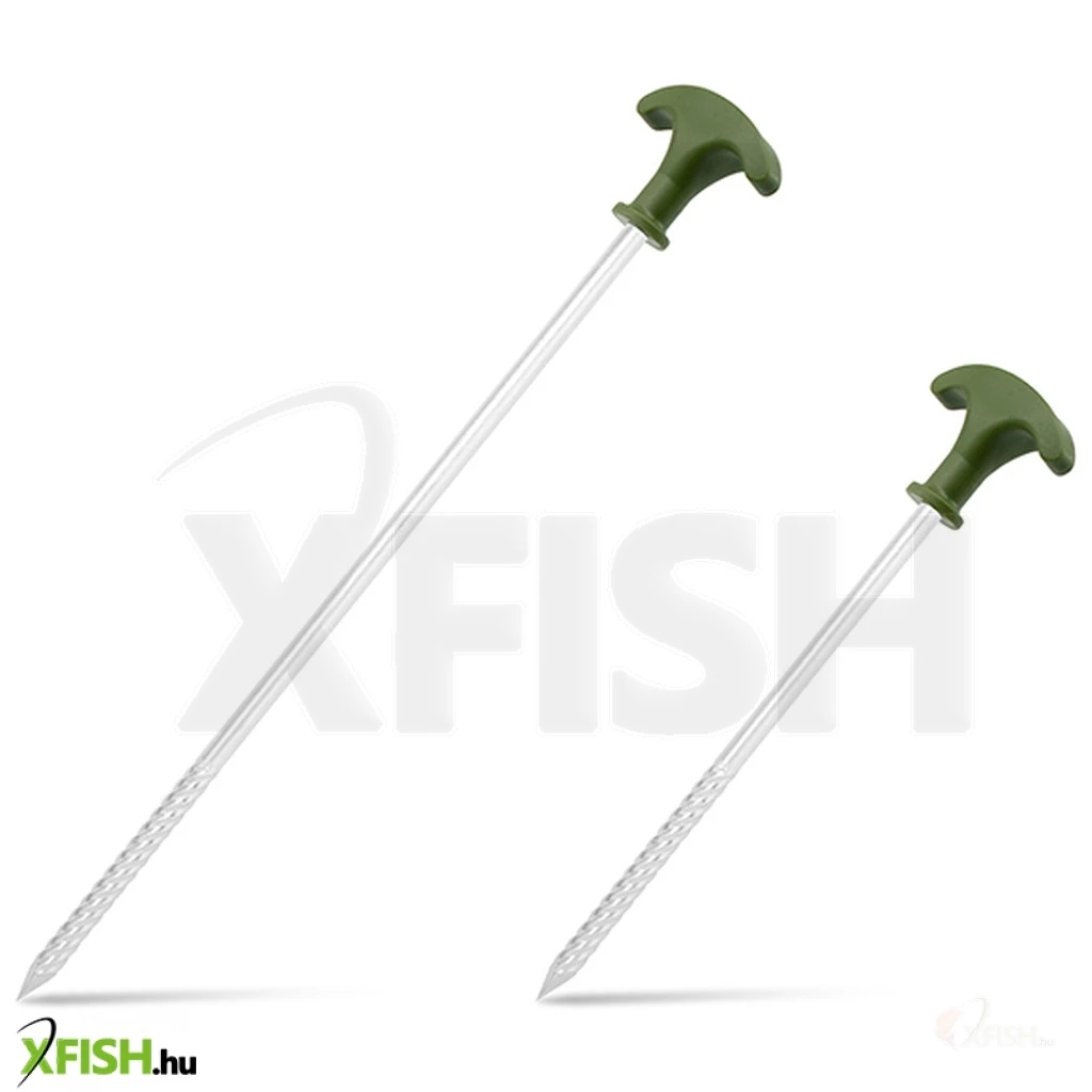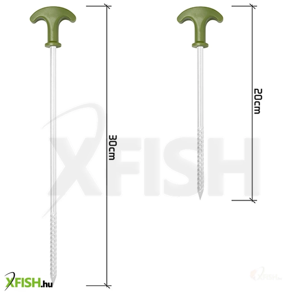 Tartalék sátorcövek készlet, amellyel kiegészítheti vagy kicserélheti sátra, esernyője vagy más menedéke elemeit. Zöld műanyag felsőrészük van, amely nem lazul meg, nem csúszik lefelé, még többszöri leszúrás esetén sem. A tartós, négyoldalú fúrós kialakítású hegy megkönnyíti a kemény és száraz talajba való behatolást. Ezeket a szegeket a maximális védelem érdekében szállítótáskával együtt kínáljuk.