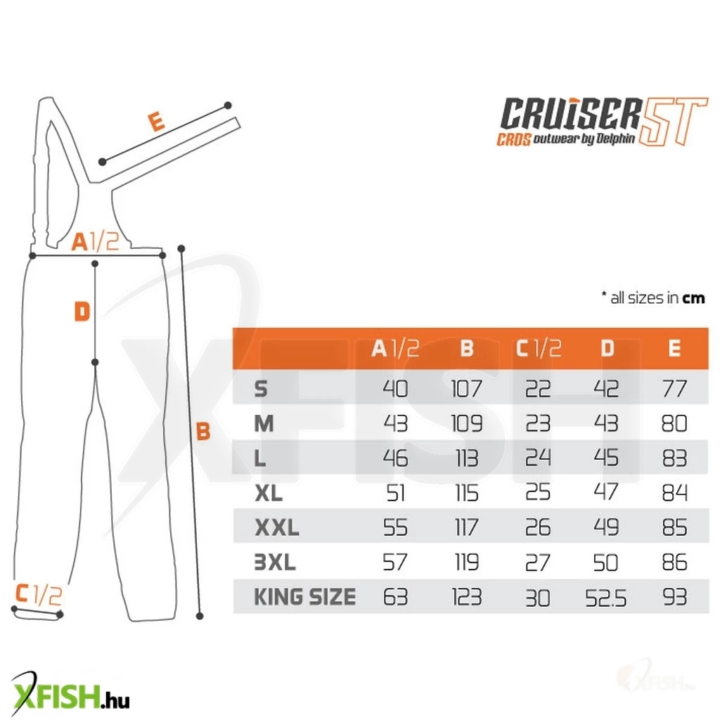 A CruiserCROS szett egy külön megvásárolható kabátból és nadrágból áll, így minden darabhoz a megfelelő méretet kombinálhatod. Mind a kabát és a nadrág külső rétegéhez használt anyag 5000 mm-ig vízálló, teljesen ragasztott varratokkal rendelkezik és szélálló is. Ezek a paraméterek kényelmet és védelmet biztosítanak horgászathoz, mindennapi viselet esetén vagy egyéb szabadtéri tevékenységek során.