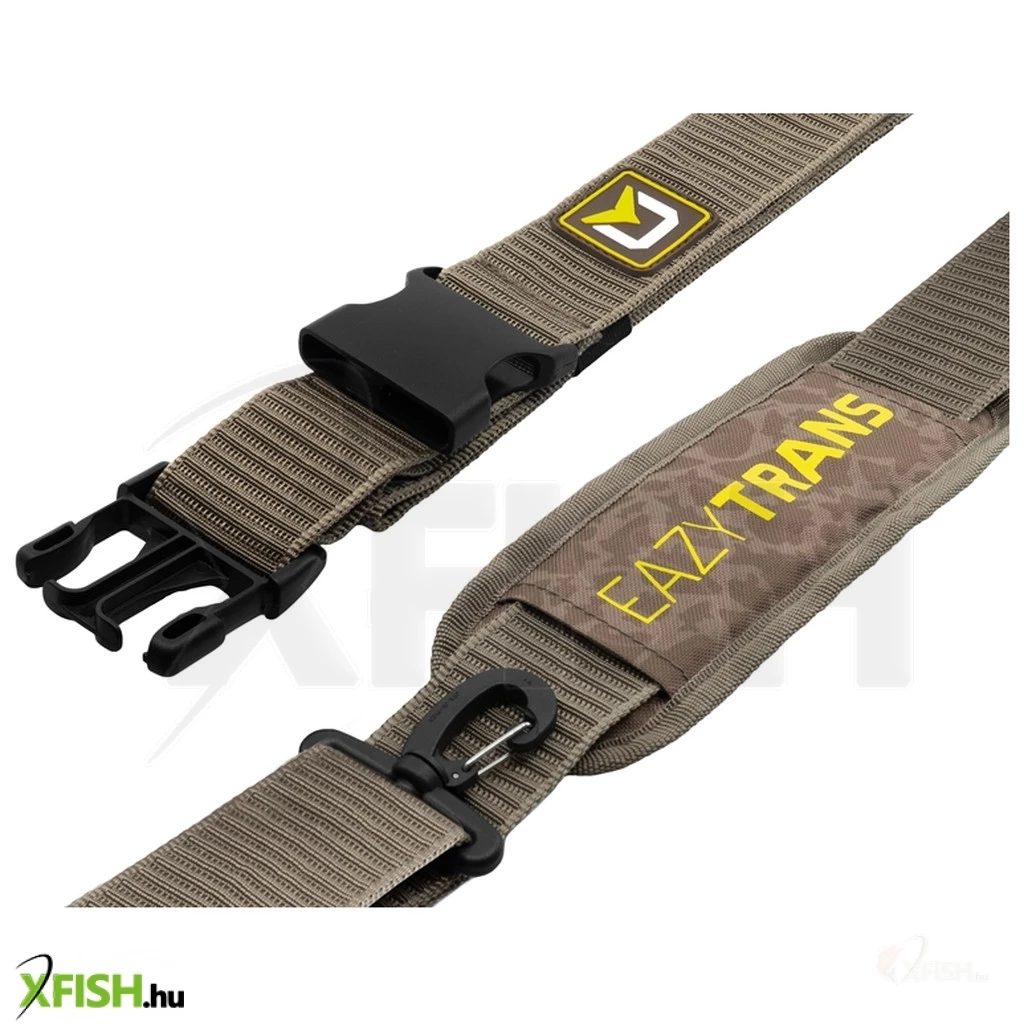 Hihetetlenül praktikus, hatékony és ugyanakkor teljesen egyszerű termék, amely helyettesíti a kényelmetlen és anyagilag megterhelő táskákat! Ez az úttörő EazyTRANS szállítópánt a Delphin műhelyből. Szállítani kell a nyugágyat, fotelt, hálózsákot vagy mindent. Ezzel a nagyon erős hevederrel már nem lesz probléma. Az EazyTRANS három részből áll, amelyek együttesen egy egységet képeznek a halászeszközök szállítására. Az alap egy vállpánt, megerősített párnázott résszel és nagyon erős műanyag fogantyúkkal. Ezekhez a fogantyúkhoz két, állítható hosszúságú, szilárd kapcsokkal ellátott oldalsó heveder van rögzítve. Állítható hosszuknak köszönhetően tökéletesen körbezárhatja őket, és rögzítheti horgászfelszerelésének bármely részét, vagy akár több terméket egyszerre, amelyeket könnyen áthelyezhet a kiválasztott helyre. Az EazyTRANS-t egy kis praktikus tasakban szállítjuk, melynek köszönhetően csak minimális helyet foglal el a dolgok között. Erre a zseniális termékre egyértelműen érvényes a sok zene kevés pénzért.