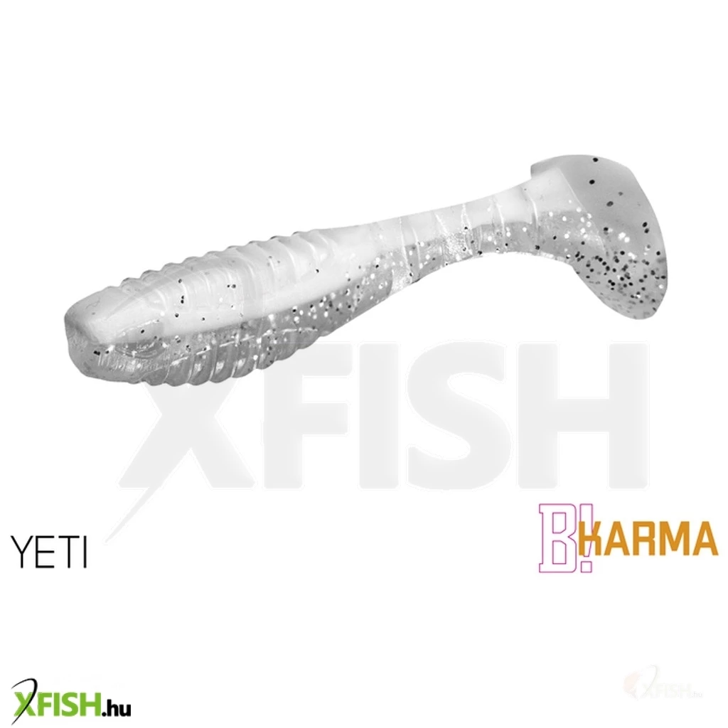 A KARMA modell tervezését kezdettől fogva nem klasszikus megoldásként választottuk a klasszikus modellhez. A cél egy sokrétű felhasználást lehetővé tevő csali megalkotása volt. Első pillantásra észreveheti, hogy a testméret és a csali farok aránya eltér a szokásostól. A csali nagyobb farka a csali atipikus mozgását okozza, ami a farok oszcillációja mellett a test gyengéd forgását is hozzáteszi, ami sérült egyed benyomását kelti. Ez a mozgás rendkívül vonzó a halak számára, és új lehetőségeket kínál a csalival való munka során. A csalitest és a farok csatlakozása között három bevágást modelleznek, amelyek hitelességet adnak a csali mozgásának. A csali teste a háton és a hason rovátkolt. Ennek két oka van. Az első a víz vibrációjának növelése. A második ok az, hogy megkönnyítsük a csali horogra helyezését. A bevágások segítségével pontosan le tudod mérni, hogy a csaliba hova kerül a horog. A jigre való felszúrás így egyszerű. A csali elülső részén a száj területén egy kivágással van módosítva, hogy a csali jobban illeszkedjen a jigfejhez.