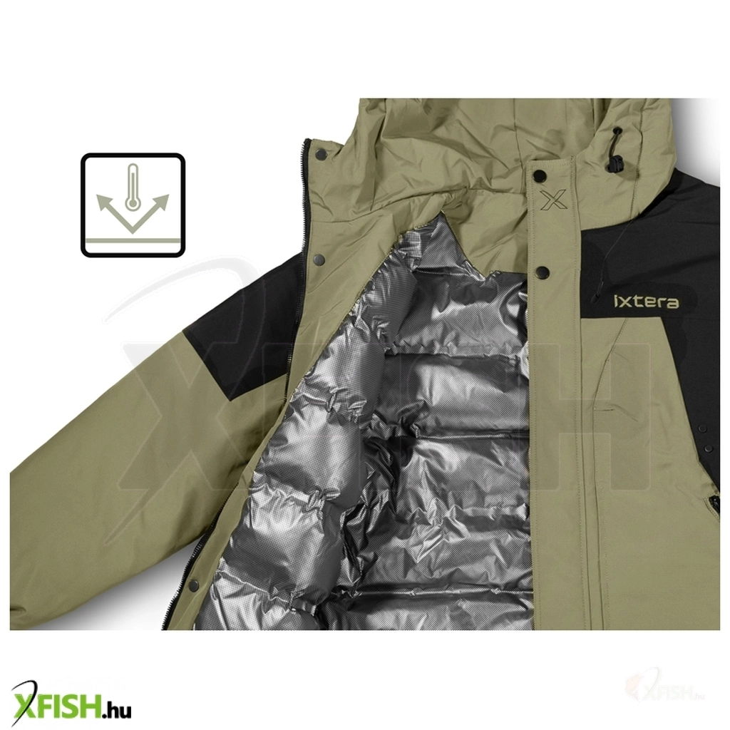 Az IXTERA márka debütáló modellje egy felsőkategóriás izotermikus kabát, amely maximális hőkomfortot és kényelmet nyújt még akkor is, amikor a hőmérséklet jóval fagypont alá süllyed. A belső bélés hatékonyan vezeti a testhőt a melegebb területekről a hűvösebbek felé, így a kabát belső felületén állandó hőmérsékletet tart fenn. Az izotermikus szerkezet megbízhatóan akadályozza meg a hőveszteséget, miközben szigetel a hideg, a szél és a nedvesség ellen is. Az eredmény: stabil hőkomfort, amelyre mindig számíthat a vízparton vagy a természetben töltött hosszú, havas napokon is.