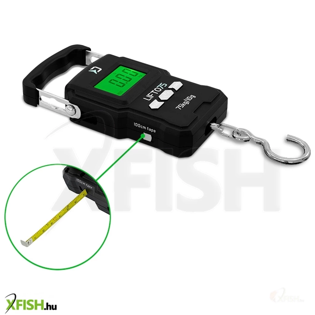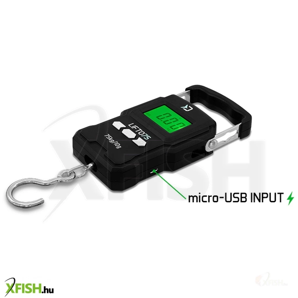 Ha van tökéletes mérleg horgászoknak, akkor az határozottan a Lifto! Ez az újratölthető digitális mérleg nagy pontossággal mér 10 gramm és 75 kilogramm közötti súlytartományban. A Lifto nagyon egyszerű vezérléssel rendelkezik, mindössze három gombbal. A mérleg be- és kikapcsolása a Power ON feliratú középső gomb megnyomásával történik. A UNIT gomb rövid megnyomásával módosítható a képernyőn megjelenő súlyegység (kg, lbs, JIN, oz). A UNIT gomb negyedik megnyomásával a mérleget hőmérő üzemmódba kapcsolja, amely az aktuális hőmérsékletet mutatja °C-ban. Erős nappali fényben kikapcsolhatja a kijelző háttérvilágítását, ha 2 másodpercig lenyomva tartja a UNIT gombot, ez pedig hozzájárul az akkumulátor élettartamának meghosszabbításához. A TARE funkció lehetővé teszi a kampón lévő tárgy súlyának nullázását, ami hasznos a halak súlyának mérőzsák nélküli, pontos meghatározásához.