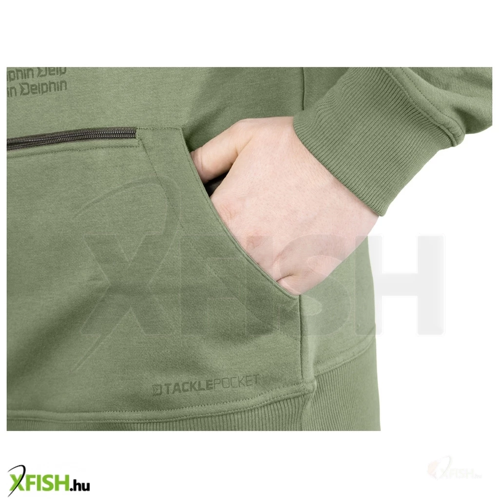 Maximális kényelmet és stílust kínáló kapucnis pulóver horgászathoz, természetjáráshoz vagy városi kirándulásokhoz. Zöld színű anyagból készül, amely rugalmas és kellemes tapintású, kiváló kényelmet biztosít.