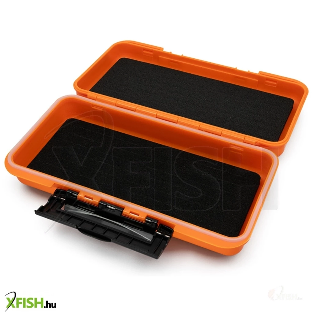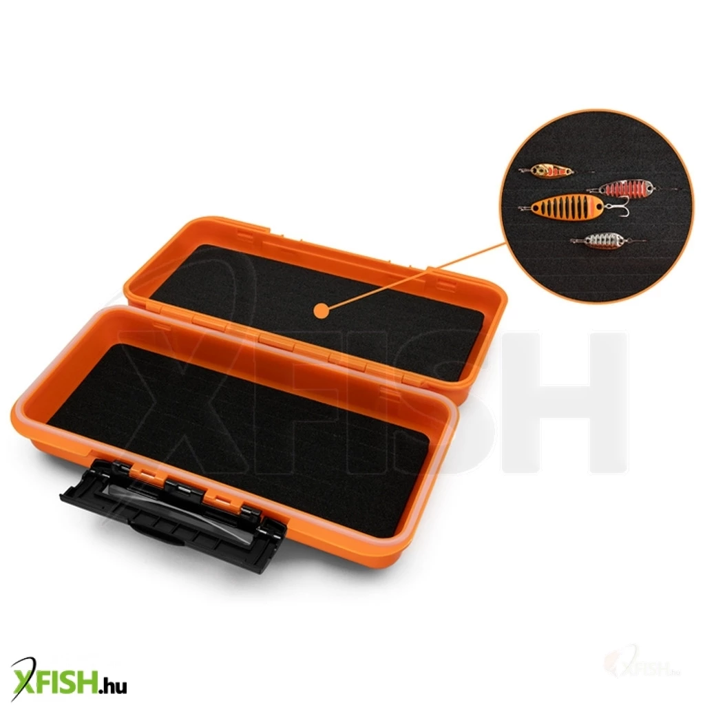 A LureBOX QUICK egy kompakt vízálló doboz pergető műcsalik tárolására. A belseje EVA hab bélést tartalmaz. A habban bevágások találhatók, amelyek segítségével könnyen rögzíthetők benne a jighorgokkal ellátott plasztikcsalik. Egyszerűen nyomja bele a horgot a bevágásba, a csali sértetlen marad, és a hab megvédi a horogok élét az eltompulástól. A doboz TWISTO rendszerek tárolóhelyeként is használható anélkül, hogy azok összegabalyodnának. Különálló horgokat is tárolhat benne, hogy mindig kéznél legyenek, amikor szükség van rájuk. Narancssárga, átláthatatlan műanyagból készül, hogy csökkentse a korrózió kockázatát, amikor használt kellékeket helyez vissza a dobozba. Ezenkívül praktikus műanyag kapcsok vannak a külső oldalán, és tömítéssel van ellátva a nedvesség taszítása érdekében.