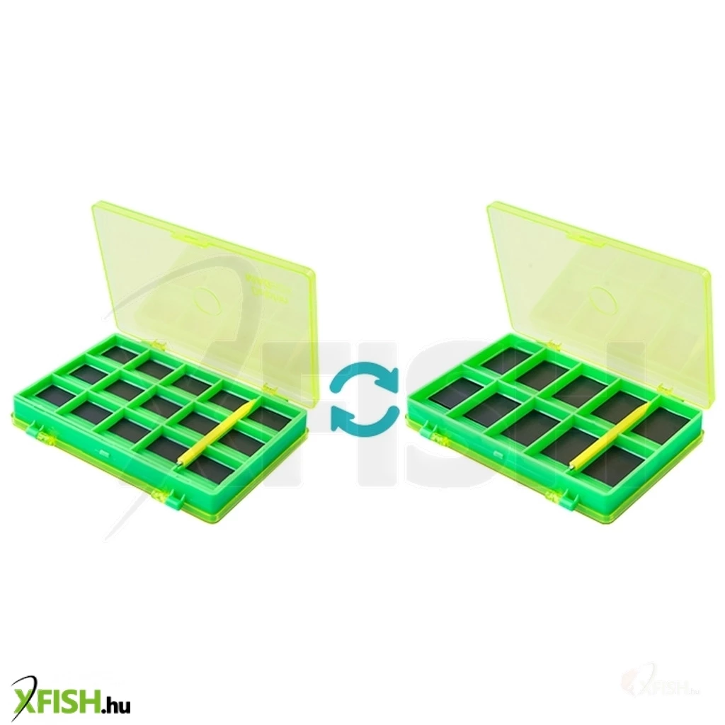 Eszköz amire minden horgásznak szüksége van. Ez a Delphim Magbox, ahova elhelyezheti apró fém horgászkellékeit, mint például a horgokat,forgókat,kapcsokat. A doboz kétoldalú, az egyik oldalon 10 nagyobb (2,5x2,2cm) retesz található, a másikon pedig 15 kisebb (2,1x1,3cm). Méretek alapján a reteszekben könnyen osztályozhatja horgászkellékeit, és nem szóródnak ki. A helyükön maradnak egészen addig, míg a hozzárakott kellékkel ki nem veszi kellékeit használatra. A doboz jól észrevehető színt kapott, ezért nem fogja elveszíteni és minden fontos kelléke kézügyében lesz.