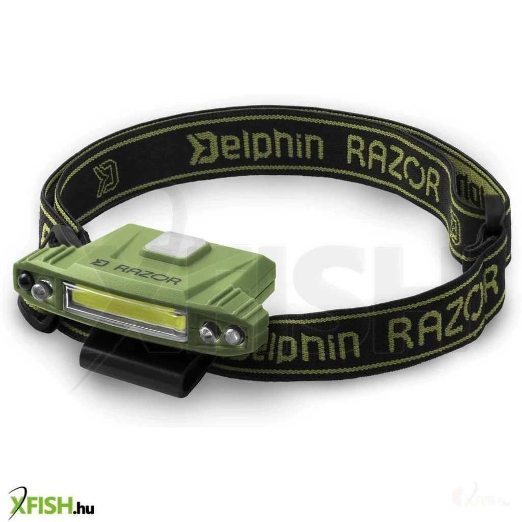 A Delphin RAZOR USB egy praktikus zöld színű LED fejlámpa beépített Li-on elemmel, melynek kapacitása 500mAh. A hagyományos módon való viseleten kívül a könnyű súlyának köszönhetően és a beépített szerkezetnek köszönhetően felfogatható a siltre. Mozgásérzékelővel is el van látva, egyszerű a kezelése, memória funkciójának köszönhetően megjegyzi a világítás intenzitását és a világítás színét. A fényerőnek három mértéke van. Az első gombnyomásnál 30% a fényerő melynél 8 óra az elem kapacitása, a második gombnyomás után 100% a fényerő és ez 3 óra világítást biztosít, a harmadik gombnyomás után 100% fényerő piros fény 3 óra világítást biztosít. Maximális fényerőnél a teljesítmény 85lm. USB-C kábelen keresztül könnyen tölthető közvetlenül egy powerbank segítségével, és a töltés körülbelül 2 órát vesz igénybe.