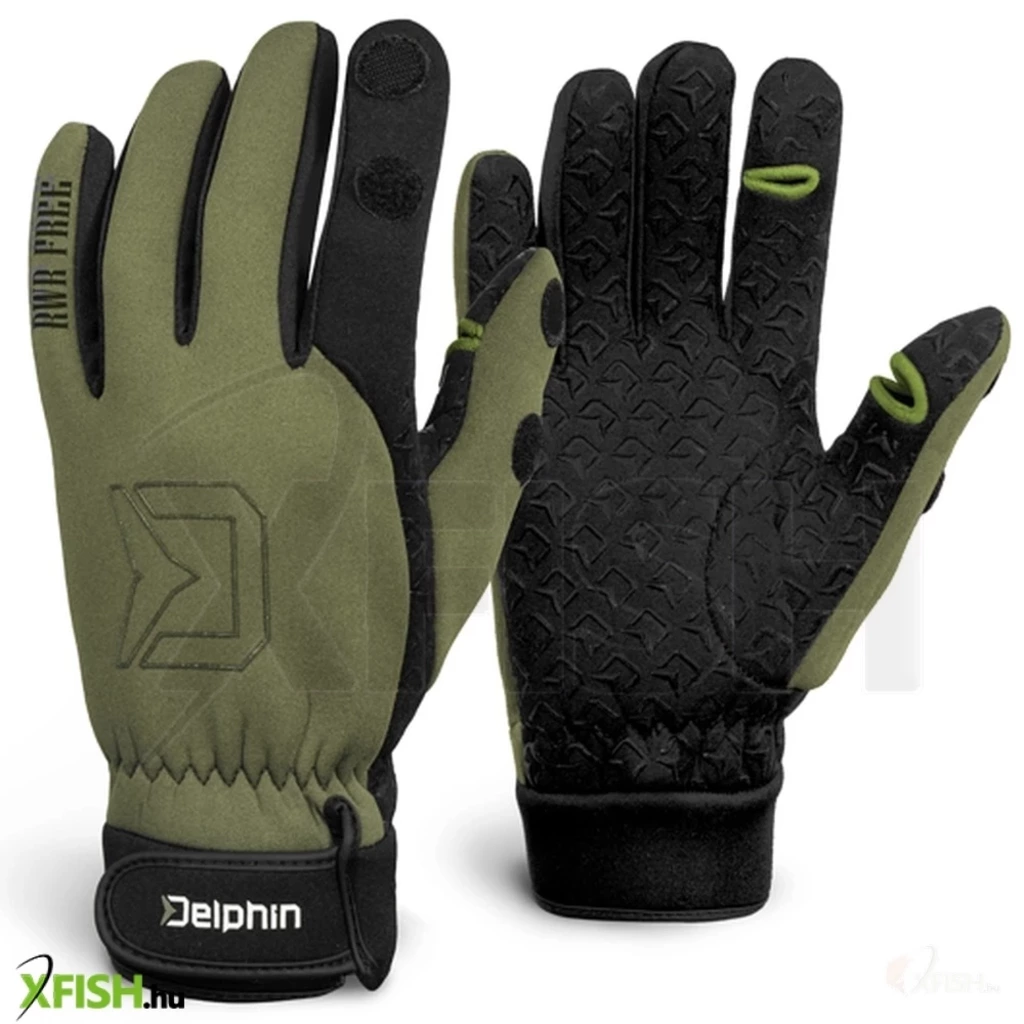 A Delphin RWR Free neoprén kesztyűk még a leghidegebb napokon is melegen tartják a kezét. A kesztyűk részletes kidolgozása, a téli horgászat komfortját egy teljesen más szintre helyezi. Nagy pozitívum még a tenyér gumírozott felülete, amely csúszásgátló, gumírozott réteggel van ellátva, innovatív Delphin logóval. A hüvelyk- és mutatóujj végén levehető végek, tépőzáras rögzítési lehetőséggel, megkönnyítik az apró cikk kezelését vagy felgyorsítják a végszerelék elkészítését. Hogy ne kerüljön a kesztyűbe hideg vagy nem kívánt víz a csuklójára, a tömítésük belevarrt gumiból készült, és tépőzáras szorító övvel is állítható. A zöld és fekete színkombináció az RWR Free kesztyűket tökéletes társsá teszi horgászathoz és egyéb szabadidős tevékenységekhez.