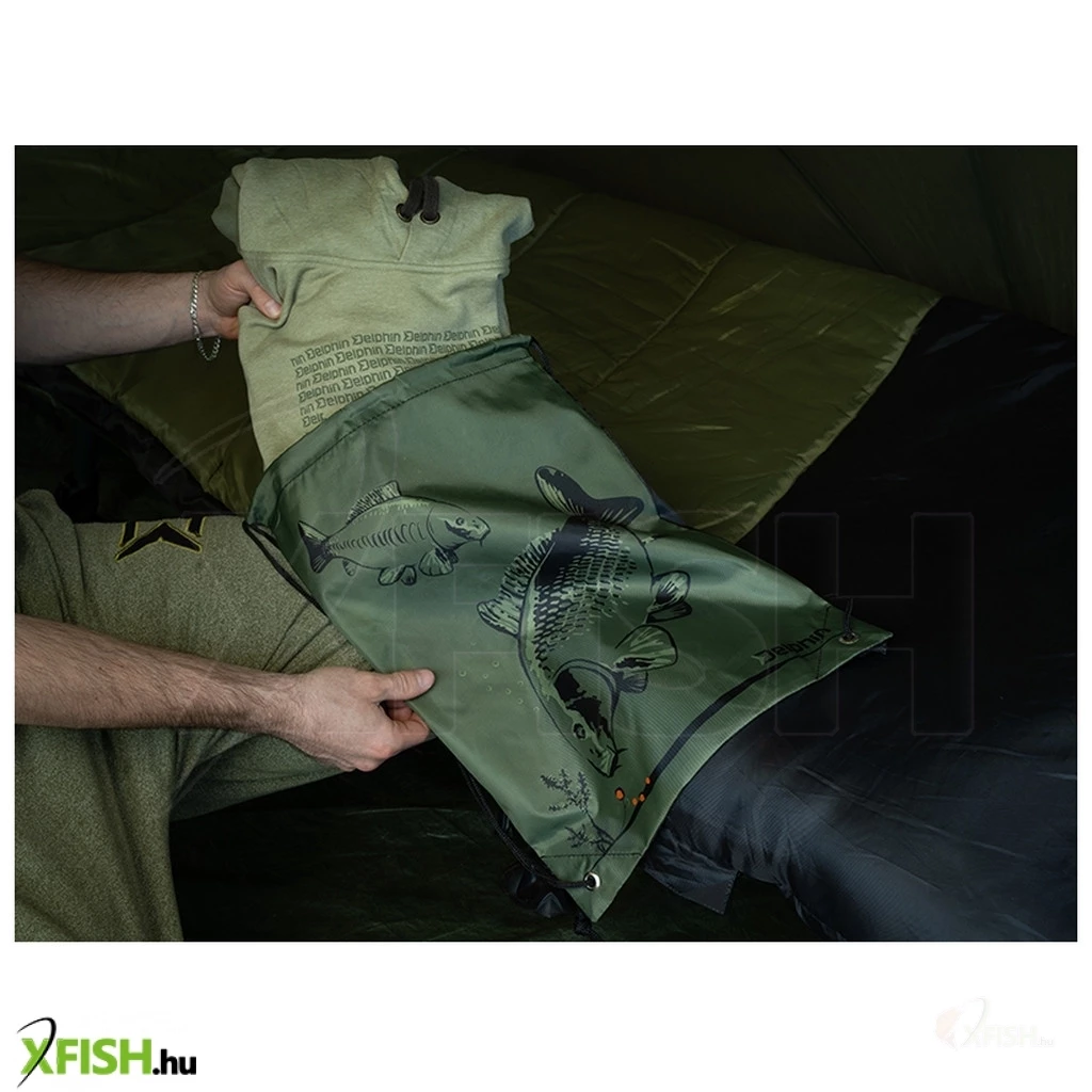 A Delphin Simple Bag CARP táska egy táplálkozó ponty mintával remek kiegészítő minden horgász számára. 100% poliészterből készült, így könnyű, tartós és könnyen karbantartható. A húzózsinóros záródás lehetővé teszi a táska kényelmes hordozását akár háton vagy vállon, miközben biztonságban tudhatja a benne lévő dolgait. Kiválóan alkalmas kisebb horgászkellékek, személyes tárgyak szállítására, de akár praktikus mindennapi táskaként is használható. Vonzó megjelenésével és sokoldalú felhasználhatóságával tökéletes választás minden természet- és horgászatkedvelő számára.