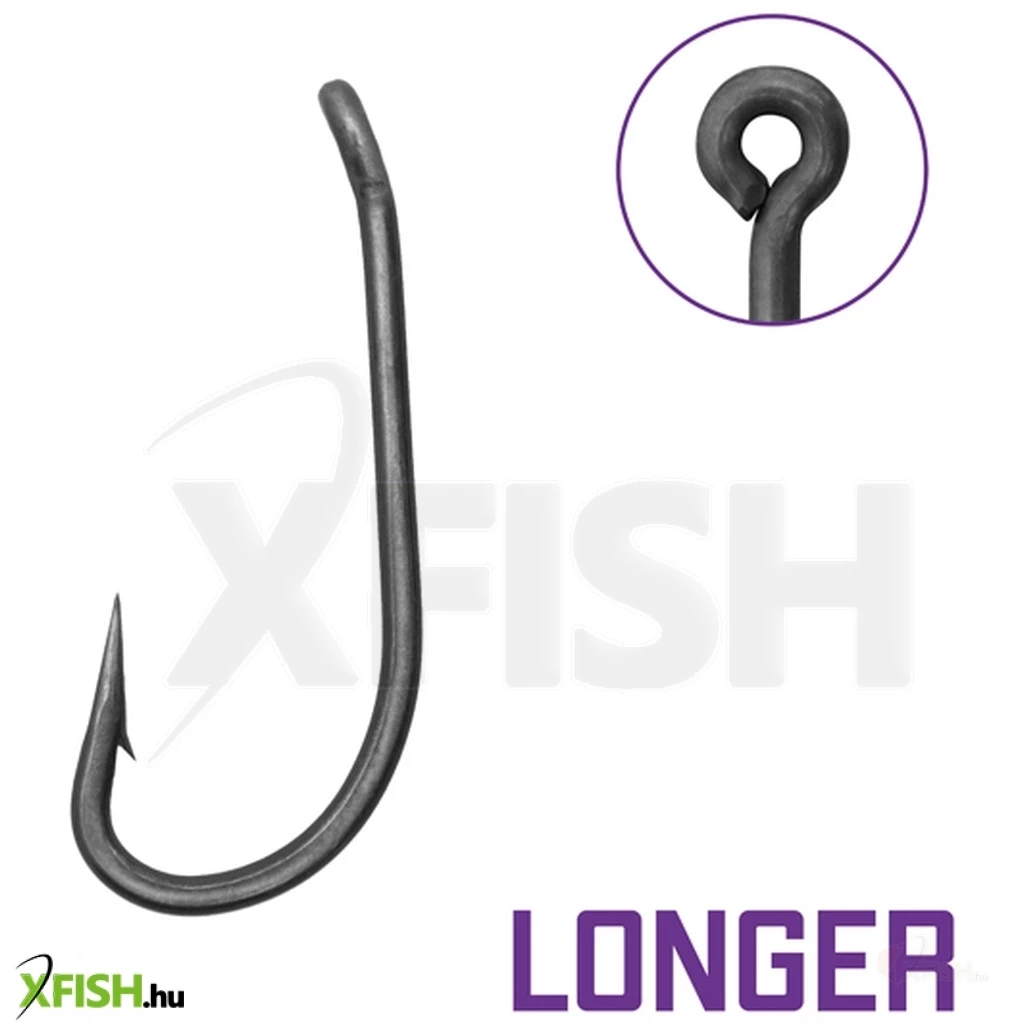 A THORN Longer-nek hosszú, egyenes szára van, amely fülben végződik. A horog öble kicsi, hegye pedig hosszú és egyenes. Mindezen tulajdonságok miatt a horog nagyon gyorsan el tud fordulni és átszúrja a ponty száját. Ha olyan horgot keres, amely sok kapást eredményez és élvezetes horgászatot biztosít, a Longer a megfelelő választás az Ön számára. Ez a horogforma rendkívül sokoldalú; használható lebegő, kiegyensúlyozott vagy süllyedő csalikkal.
