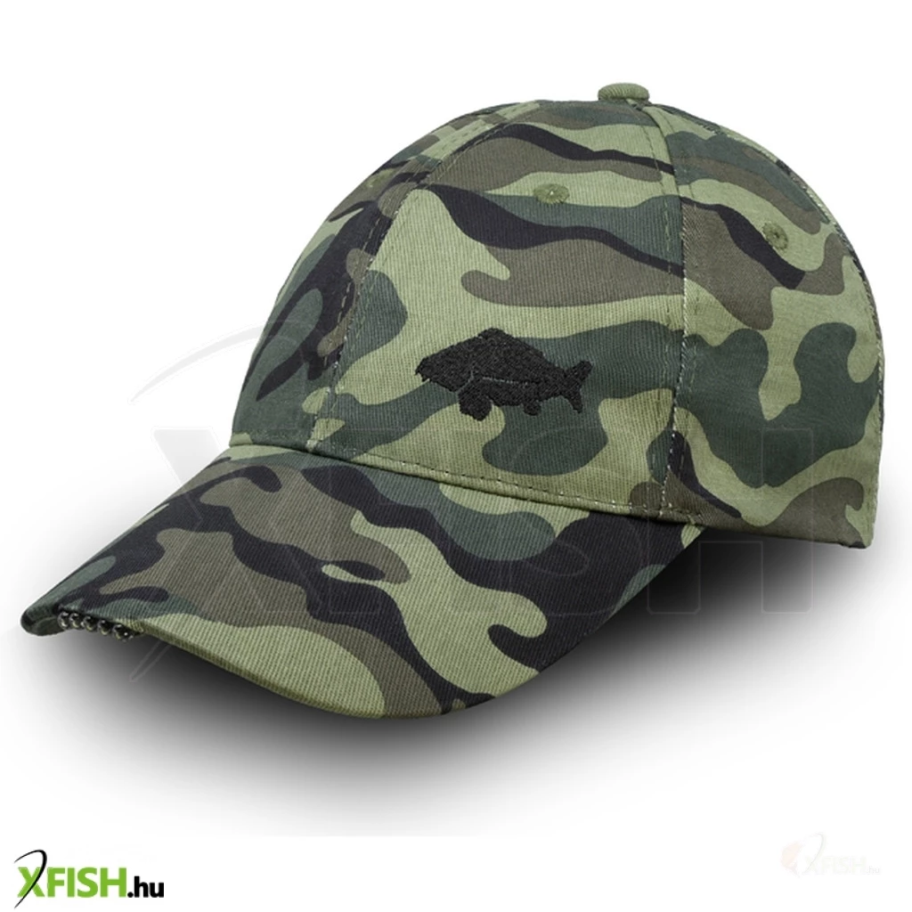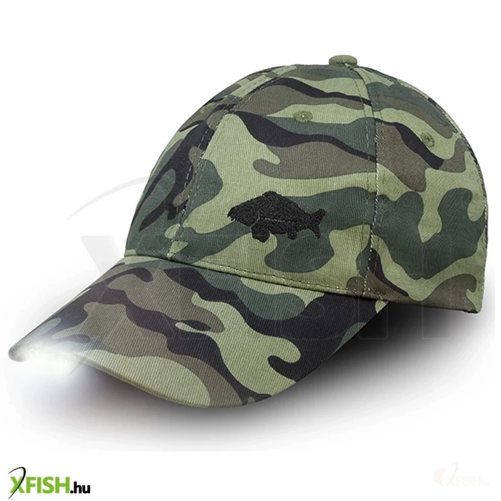 Egy praktikus terepszínű baseballsapka karimájában LED lámpával, ami minden szenvedélyes horgász számára hasznos viselet. Erős és tartós anyagból készült, diszkrét terepszínű dizájnban, amely beleolvad a környezetbe. A sapka mérete szalaggal és csattal állítható. Hat szellőzőnyílással rendelkezik, amelyek hűvösen tartják fejét a meleg időben.