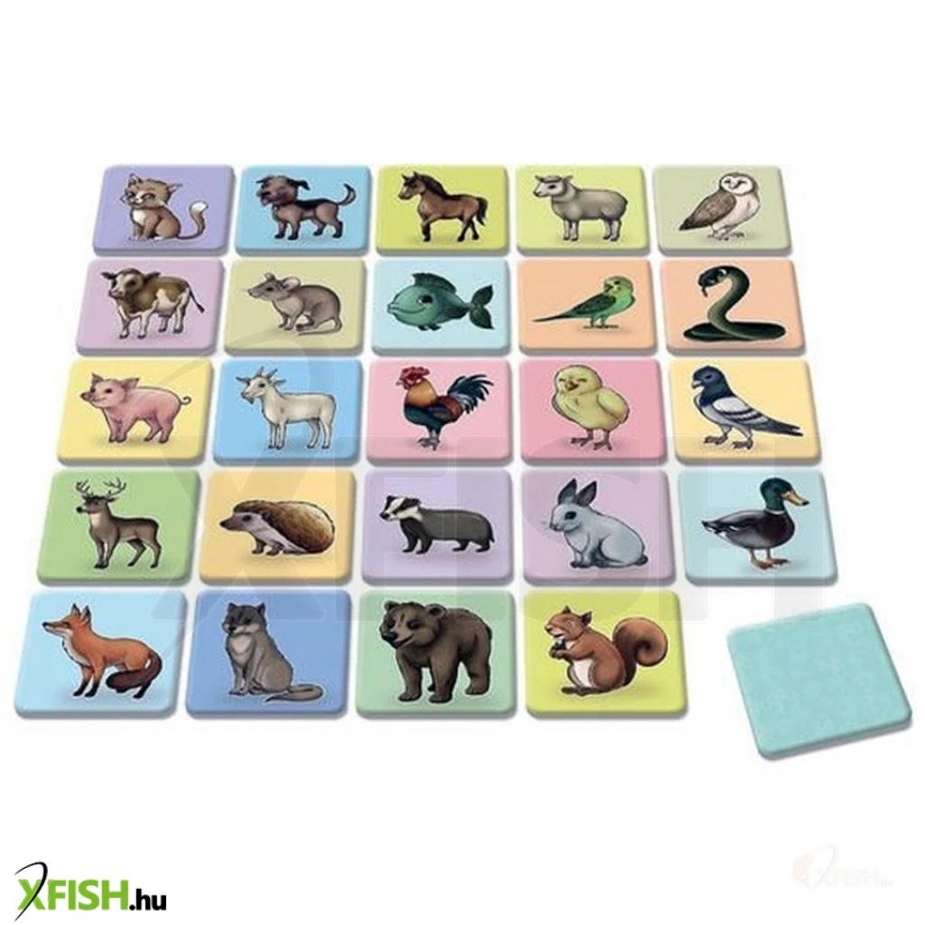 Fejlesszétek állatokkal az emlékező tehetségeteket! Az Állatok memóriajáték lefelé fordítható memórialapkákat tartalmaz, különféle állatok képével díszítve. A játék lényege, hogy minden lapkát lefordítva kell letenni, és párosával megfordítva kell megtalálni a két-két egyformákat. Ha nem egyforma a két lefordított lapka, akkor vissza kell őket forgatni, és a következő játékos jön. A játékot az nyeri, aki a legtöbb párt megtalálja.