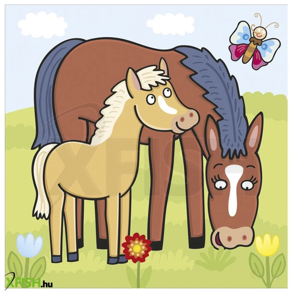 A táblákon lévő kedves cica, kutya és lovacska figurák kirakása közben játékosan tanulhatók az állatok nevei és tulajdonságai. A kirakó játék darabjainak szélei le vannak kerekítve, így biztonságosan játszhatnak vele a kicsik. Kiváló minőségének köszönhetően a darabok sokszor összerakhatók és szétszedhetők. Kezdjétek a játékot a három darabos, legegyszerűbb puzzle táblával, majd jöhetnek a nehezebb kihívások is. Jó szórakozást!
