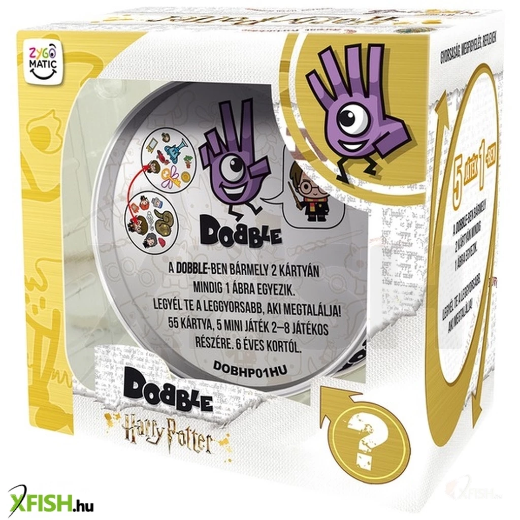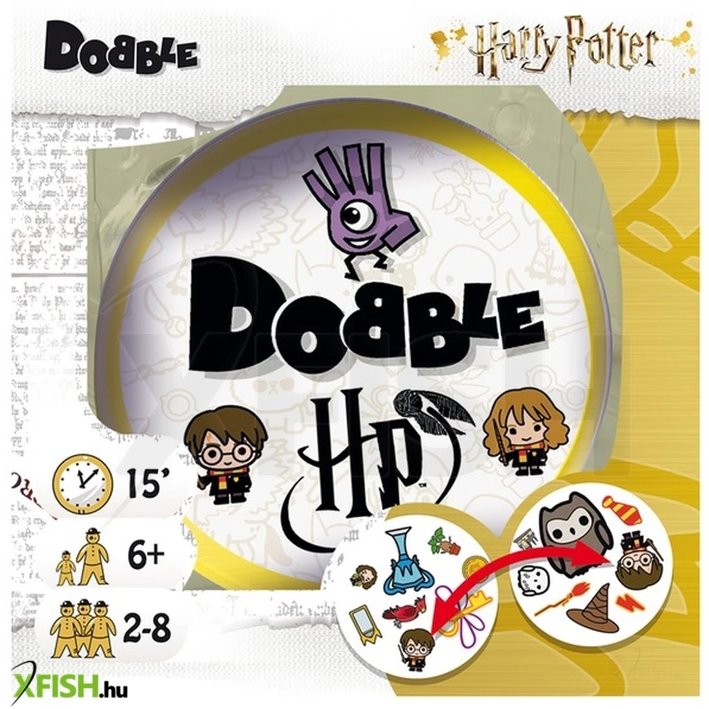 Fokozd a parti hangulatát a Dobble - Harry Potter társasjáték segítségével! Az egyik legnép-szerűbb kártyajáték legújabb kiadásában a világhíres fiatal varázslóval karöltve törhetsz a csúcsra! A Harry Potter Dobble kártyajátékban fontos a gyorsaság, megfigyelés és a reflex! Találj két olyan kártyát, amin legalább 1 ábra megegyezik és csapj le rá először Te, hogy a játék végén nálad legyen a legtöbb lap!