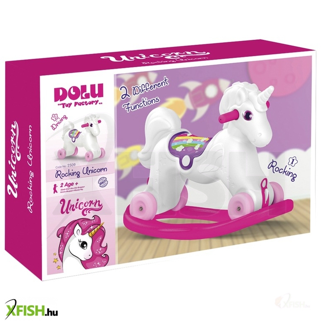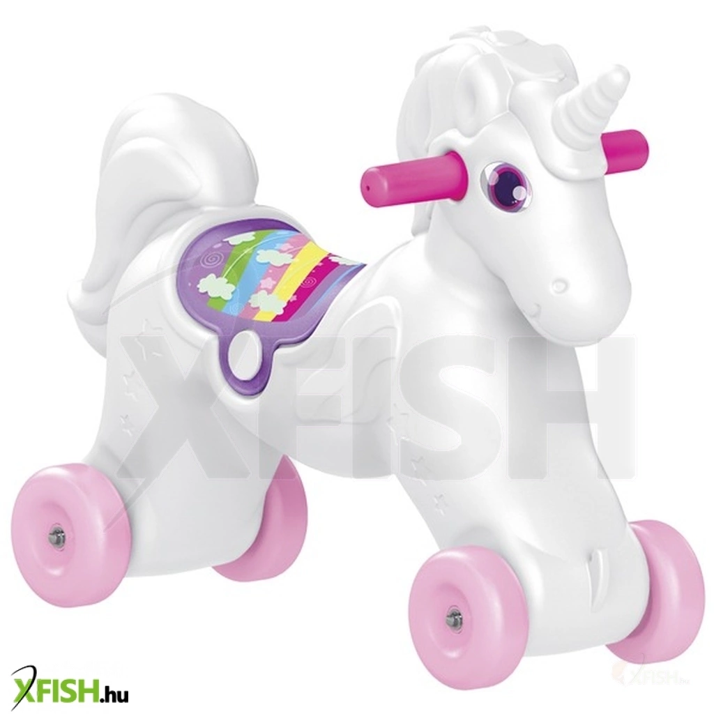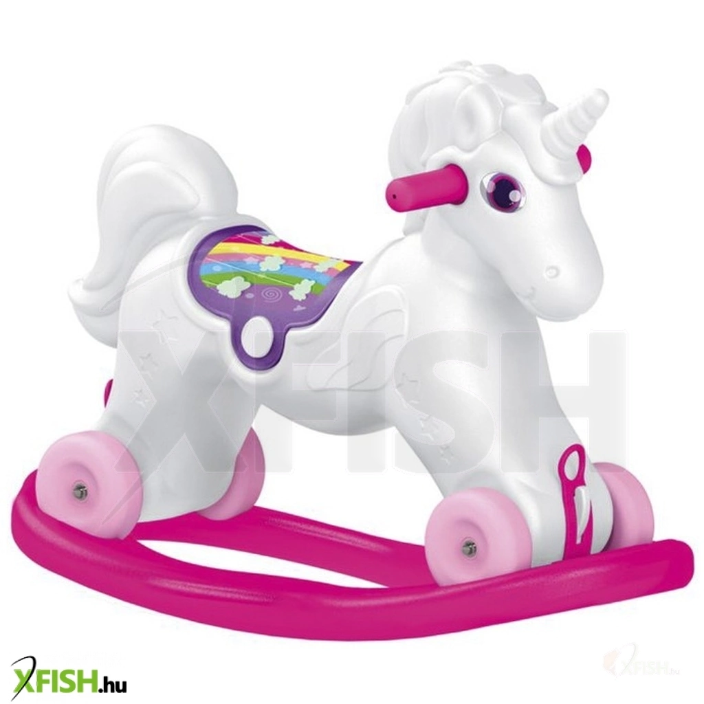 Billegj előre-hátra az egyszarvú hintalovon! A 2 az 1-ben Unikornis hintaló egy műanyagból készült egyszarvú paripa, hófehér színben, fogantyúval és szivárványos nyereggel. A lovat használhatod hintalóként is, de a talpakat leszerelve egy lábbal hajtós kerekes járgány lesz belőle, amivel beltéren, kültéren is lehet száguldozni. Az Unikornis hintaló fejleszti az egyensúly érzéket, erősíti a lábakat, könnyű szerkezetének köszönhetően bárhova magaddal tudod vinni. Csomagolás méretei: 68 x 22 x 45 cm.